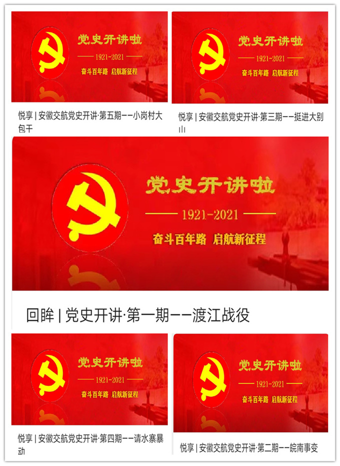 結(jié)合當(dāng)前黨史學(xué)習(xí)教育實際,充分運用安徽黨史文庫平臺線上資源,創(chuàng)新學(xué)習(xí)教育形式,充分運用我們身邊的“安徽黨史故事”,開設(shè)《黨史開講》欄目,邀請公司領(lǐng)導(dǎo)講述在江淮大地上發(fā)生的黨史故事。截至目前,《黨史開講》欄目已經(jīng)制作5期,受眾人數(shù)達到500余人次,點擊量達到1500多人次,分別講述了在安徽大地上發(fā)生的渡江戰(zhàn)役、皖南事變、挺進大別山、請水寨暴動和小崗大包干五個黨史故事。