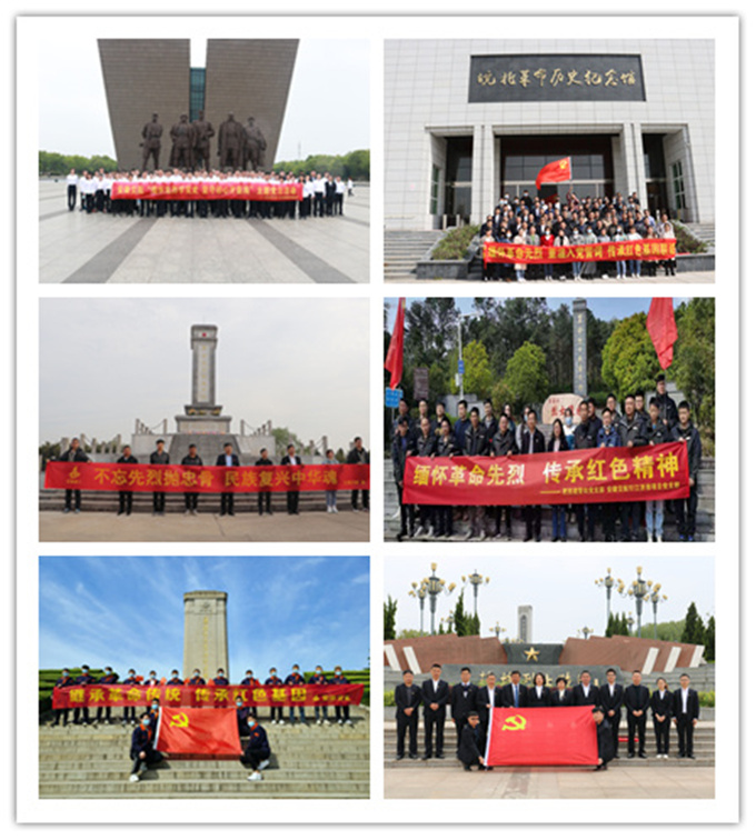 誠如公司黨辦負責(zé)人所說,公司黨委將黨史學(xué)習(xí)教育同特色主題活動結(jié)合起來。充分用好身邊紅色資源。所屬各支部紛紛就近赴紅色主題紀(jì)念館開展形式多樣的革命傳統(tǒng)教育。機關(guān)黨支部、引江濟淮項目黨支部赴渡江戰(zhàn)役紀(jì)念館聯(lián)合開展黨史學(xué)習(xí)教育主題黨日活動,亳州PPP項目支部把黨史學(xué)習(xí)教育課堂“搬到”烈士陵園,開展“緬懷革命先烈、重溫入黨誓詞、傳承紅色基因”聯(lián)建共建主題活動,淮北分公司黨支部組織全體員工到徐州淮海戰(zhàn)役紀(jì)念塔以“繼承革命傳統(tǒng),傳承紅色基因”為主題黨建活動,三公司利辛片區(qū)到利辛縣烈士陵園舉辦以“不忘先烈拋忠骨,民族復(fù)興中華魂”為主題的清明節(jié)祭掃紀(jì)念活動。另外,機關(guān)黨支部和滁州時代樾府項目黨支部聯(lián)合組織赴定遠藕塘烈士陵園緬懷革命先烈,傳承紅色精神。積極創(chuàng)新主題黨日活動。5月11日下午,機關(guān)黨支部、機關(guān)工會聯(lián)合開展以“重溫黨史守初心 砥礪前行擔(dān)使命”為主題的慶祝中國共產(chǎn)黨成立100周年毅行活動,不僅在毅行線路中開展黨史學(xué)習(xí)教育掃碼答題活動,而且在沿途展示中國共產(chǎn)黨帶領(lǐng)中國人民站起來、富起來、強起來的百年波瀾壯闊的歷史。三公司、利辛片區(qū)、亳州PPP項目、泗縣產(chǎn)業(yè)園EPC項目、品創(chuàng)檢測公司、天水項目等黨支部積極開展各具特色的主題黨日活動,確保黨史學(xué)習(xí)教育見到實效。