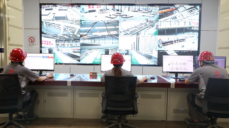 2021年3月24日,PC車間首批24塊疊合板、8塊地坪構(gòu)件和百余塊路牙石順利產(chǎn)出,達(dá)成試生產(chǎn)目標(biāo)。截至目前,各生產(chǎn)線均已調(diào)試完成,投入運(yùn)行5條生產(chǎn)線,產(chǎn)能可達(dá)650方/天,各工序平穩(wěn)運(yùn)轉(zhuǎn)。