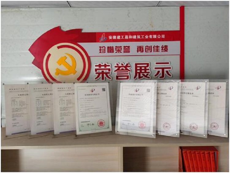 嘉和建筑產(chǎn)業(yè)園高度重視技術(shù)研發(fā)實(shí)力提升,已承接了多個(gè)相關(guān)課題的研發(fā),并取得階段性成果。其中《裝配式產(chǎn)業(yè)助力蚌埠市建筑業(yè)綠色轉(zhuǎn)型升級(jí)研究》課題獲得由蚌埠市“社會(huì)科學(xué)規(guī)劃政府資助項(xiàng)目”立項(xiàng),成為該市智庫(kù)建設(shè)和社會(huì)科學(xué)規(guī)劃立項(xiàng)唯一由生產(chǎn)企業(yè)申報(bào)成功的建筑行業(yè)領(lǐng)域課題。先后取得一種用于PC構(gòu)件養(yǎng)護(hù)窯螺栓預(yù)埋的裝配式定位裝置、裝配式定位器(PC構(gòu)件養(yǎng)護(hù)窯螺栓預(yù)埋用)、通風(fēng)外墻、一種建筑內(nèi)隔墻、鋼結(jié)構(gòu)復(fù)合樓板、一種輕鋼結(jié)構(gòu)房屋墻壁、樓板結(jié)構(gòu)、一種輕鋼結(jié)構(gòu)建筑屋面等多項(xiàng)發(fā)明專利權(quán),7項(xiàng)專利正在申報(bào)中。