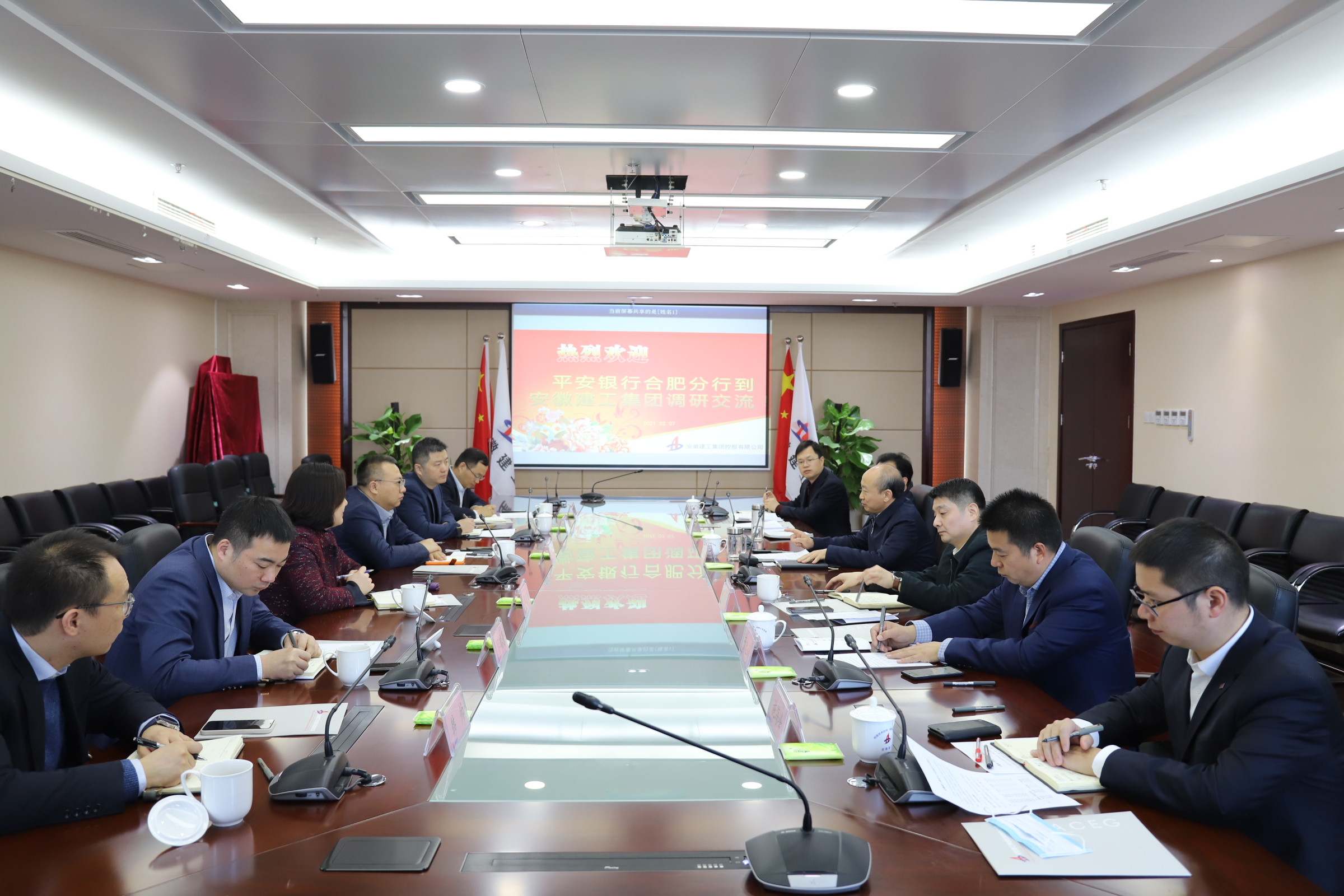 2月7日上午,建工控股黨委書記、董事長(zhǎng)趙時(shí)運(yùn)在安建國(guó)際大廈會(huì)見平安銀行合肥分行黨委書記徐凱一行,雙方就銀企合作進(jìn)行了深入交流。