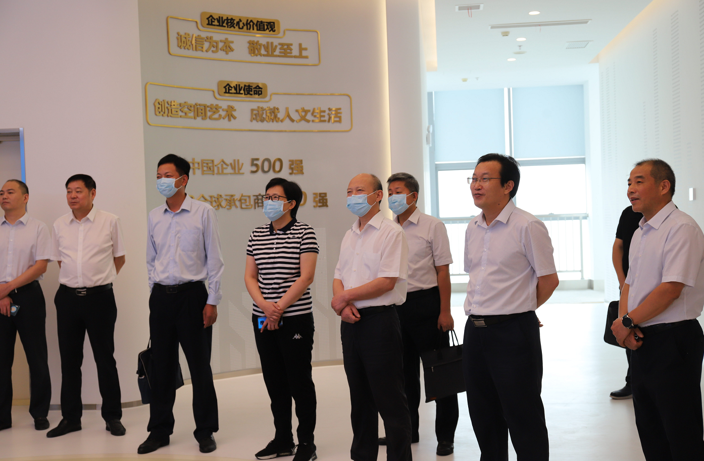 座談會前,與會人員共同參觀了集團(tuán)新落成的企業(yè)展廳。建工控股領(lǐng)導(dǎo)王汪苗、李有貴,股份公司領(lǐng)導(dǎo)孫學(xué)軍、徐文聯(lián),亳州市交通局、第三方咨詢機構(gòu)以及集團(tuán)有關(guān)單位和部門負(fù)責(zé)同志參加會見。