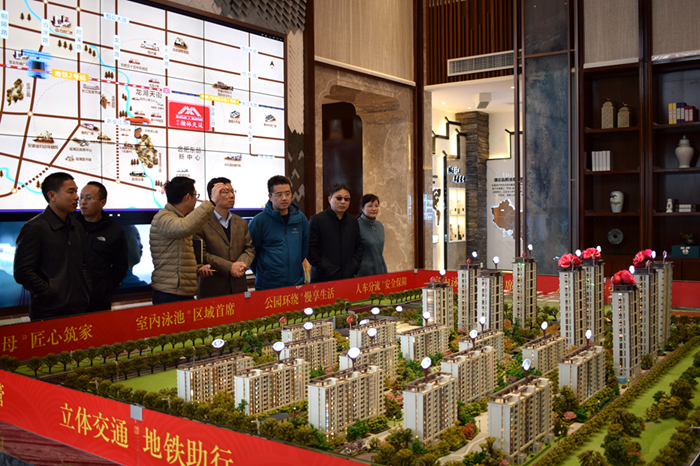 王厚良一行首先前往施工現(xiàn)場(chǎng)實(shí)地察看了工程進(jìn)度,并在營(yíng)銷中心對(duì)項(xiàng)目最新銷售情況進(jìn)行了了解。