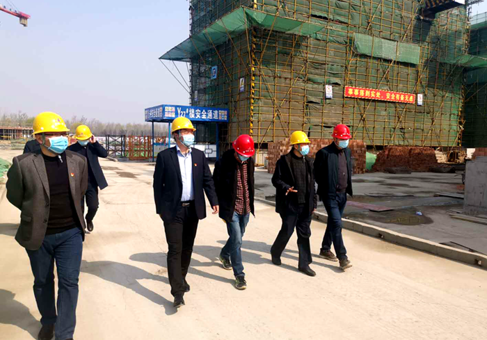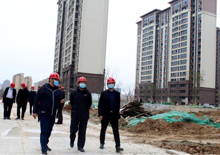 童總一行對(duì)安建地產(chǎn)·漢城源筑項(xiàng)目辦公區(qū)域、食堂、營銷中心、樣板房等場(chǎng)所進(jìn)行了檢查,詢問了項(xiàng)目的防疫布置方案及防疫物資儲(chǔ)備情況,并深入施工現(xiàn)場(chǎng)了解復(fù)工復(fù)產(chǎn)情況。