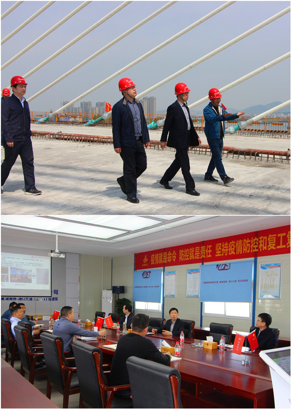 王厚良深入施工現(xiàn)場,實地調(diào)研項目建設情況,查看了項目主橋承臺、塔柱、斜拉索、主梁等建設情況,詳細詢問了主橋合龍計劃。在項目部會議室,王厚良認真聽取了項目負責人關(guān)于工程建設管理的工作匯報,對工程進度、安全質(zhì)量和科技創(chuàng)新管理及黨建工作開展等情況進行了全面了解。王厚良對項目建設情況表示肯定。他強調(diào),要繼續(xù)強化安全管理,做好工程收尾工作,加強管理經(jīng)驗和技術(shù)創(chuàng)新總結(jié),為創(chuàng)優(yōu)奪杯打好基礎。要結(jié)合工程施工管理和技術(shù)亮點,加強宣傳,展示企業(yè)形象、實力,擴大市場影響力。要繼續(xù)提高經(jīng)營能力水平,在長江大橋市場、軌道交通市場進一步拓展,實現(xiàn)項目落地。