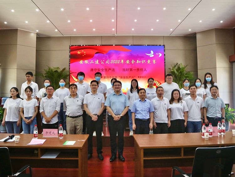 今年六月是第21個“全國安全生產(chǎn)月”,為了貫徹落實(shí)活動主題“遵守安全生產(chǎn)法 當(dāng)好第一責(zé)任人”,用以賽促學(xué)、以活動促宣傳的方式提高廣大職工的安全意識,6月17日上午,公司工會牽頭,與安全管理部聯(lián)合舉辦了安徽二建2022年安全知識競賽活動。公司黨委副書記、總經(jīng)理李建成,黨委副書記、工會主席王軍出席活動,黨委委員、副總經(jīng)理葉和永,安全總監(jiān)、安全管理部主任曹建,工會副主席、女工委主任王俊出席并擔(dān)任評委。