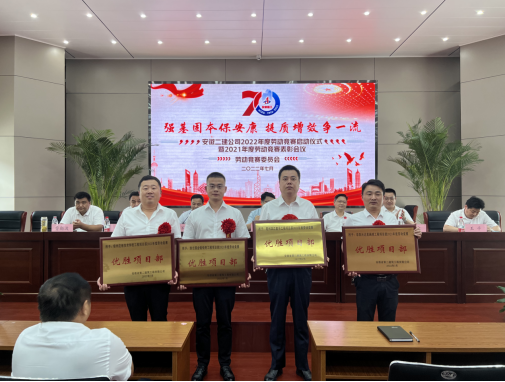 啟動(dòng)儀式上,公司黨委委員、副總經(jīng)理葉和永通報(bào)了2021年度“學(xué)黨史、保安康、搶工期、爭一流”勞動(dòng)競賽考核結(jié)果及表彰的決定。會(huì)議表彰了2021年度勞動(dòng)競賽優(yōu)勝單位、優(yōu)勝項(xiàng)目部。第三分公司、第四分公司等2家被授予“2021年度勞動(dòng)競賽優(yōu)勝單位”稱號,宿州應(yīng)用技術(shù)學(xué)校、亳州濱江壹號、淮北鉑悅府、阜陽沃達(dá)星海城項(xiàng)目等4個(gè)項(xiàng)目被授予“2021年度勞動(dòng)競賽優(yōu)勝項(xiàng)目部”稱號。