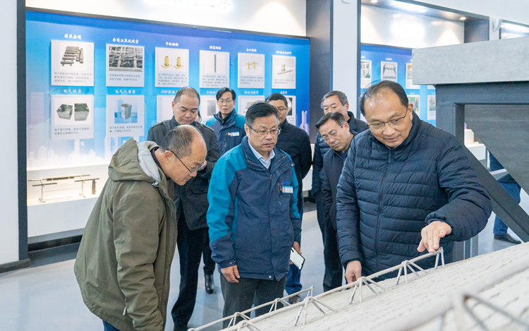 何向陽一行參觀了建筑工業(yè)公司生產(chǎn)車間,詳細(xì)了解了裝配式建筑固定模臺生產(chǎn)線、部品部件、軌道交通管片生產(chǎn)流程。在建筑工業(yè)公司綠色建造展廳,何向陽一行通過公司自行研發(fā)的Smart-PC智能化工廠大數(shù)據(jù)電子大屏,查看了企業(yè)部品構(gòu)件生產(chǎn)動態(tài)、精準(zhǔn)排產(chǎn)、堆場可視以及設(shè)備安全監(jiān)控、成本自動核算等功能后,對工業(yè)公司在發(fā)展裝配式建筑和智能建造技術(shù)方面取得的成果給予高度贊揚(yáng),并表示希望進(jìn)一步加強(qiáng)政企合作,建設(shè)更為廣闊的合作平臺,實(shí)現(xiàn)互利共贏、共同發(fā)展。