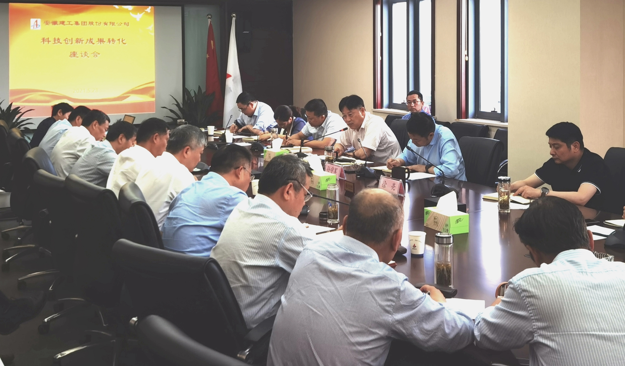5月28日,股份公司在合肥召開科技創(chuàng)新成果轉(zhuǎn)化座談會(huì)。建工控股黨委委員、股份公司總經(jīng)理許克順參加會(huì)議并講話,會(huì)議由股份公司黨委副書記、董事、副總經(jīng)理孫學(xué)軍主持,股份公司財(cái)務(wù)總監(jiān)徐亮出席。