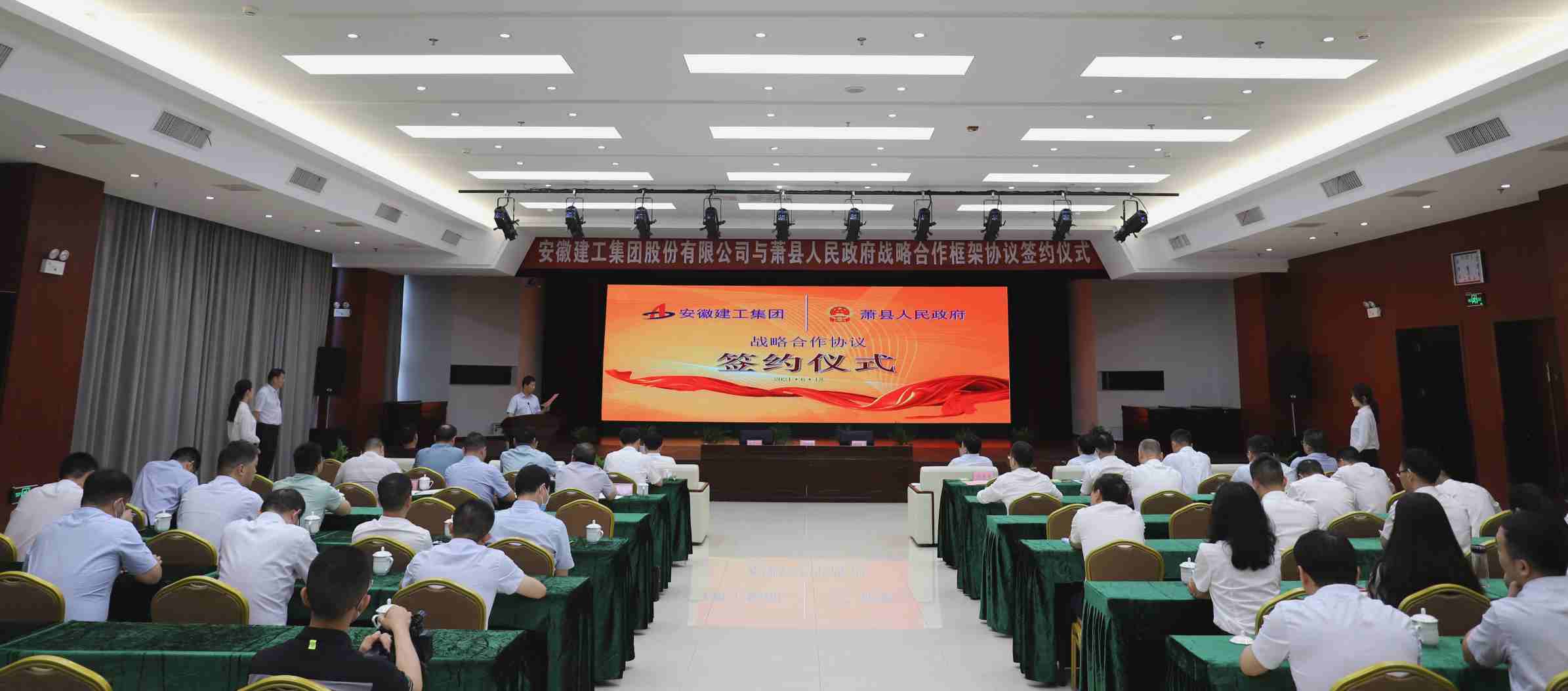 蕭縣縣委常委、縣政府黨組副書記尉成輝,建工控股公司發(fā)展規(guī)劃部部長余志剛代表雙方進行簽約。蕭縣領(lǐng)導(dǎo)肖民,股份公司領(lǐng)導(dǎo)左登宏、黃代出席儀式,蕭縣政府、集團機關(guān)相關(guān)人員列席儀式。