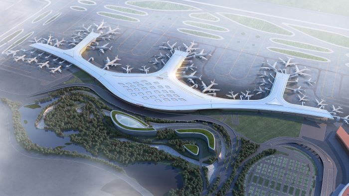 據(jù)悉,本項(xiàng)目總建筑面積約36.98萬(wàn)平方米,合同工期1097日歷天。采用“雙港灣+雙 L”的建筑構(gòu)型,主樓面寬約 400 米、進(jìn)深約 180 米。屋頂標(biāo)高為 43 米,地下一層、 地上四層,主體結(jié)構(gòu)為鋼筋混凝土框架,屋頂為大跨度空間鋼結(jié)構(gòu)體系。項(xiàng)目建成后,預(yù)計(jì)可滿足2030年合肥新橋國(guó)際機(jī)場(chǎng)旅客吞吐量4000萬(wàn)人次的需求,將為建設(shè)“翅膀上的安徽”以及提升合肥區(qū)域航空樞紐綜合功能提供堅(jiān)實(shí)支撐。