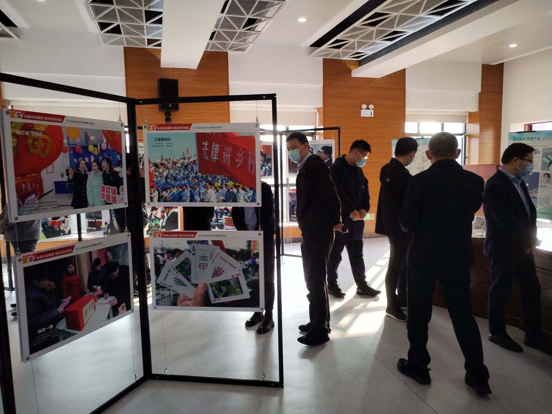 在法治宣傳教育長廊,大家分別進入展示區(qū)、體驗區(qū)、活動區(qū),駐足觀看憲法要義、習(xí)近平法治思想、民法典、盛世要法、普法歷程、多功能展廳展示內(nèi)容。長廊以“美好安徽·法治同行”為主題,設(shè)計理念和構(gòu)思精心、獨特,是全國首個省級法治宣傳教育館、展示館、體驗館。作為開展群眾性法治文化活動的線下陣地,場館通過圖文展出、光電影像、專題視頻、互動體驗等方式讓同志們在“游園式”活動中留下深刻印象。