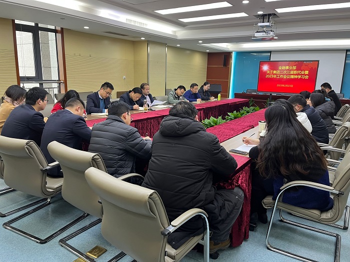 2月23日下午,金融事業(yè)部召開會(huì)議,傳達(dá)學(xué)習(xí)建工控股二屆三次職代會(huì)暨2023年工作會(huì)議精神。黨支部書記、副總經(jīng)理王繼成主持會(huì)議。