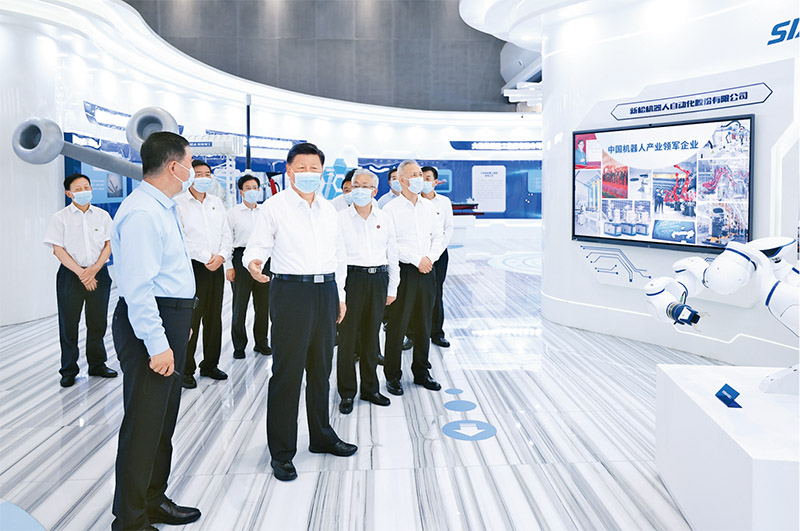 2022年8月16日至17日,中共中央總書記、國家主席、中央軍委主席習(xí)近平在遼寧考察。這是17日下午,習(xí)近平在沈陽新松機(jī)器人自動(dòng)化股份有限公司展廳,了解公司生產(chǎn)經(jīng)營、自主創(chuàng)新情況。 新華社記者 鞠鵬/攝