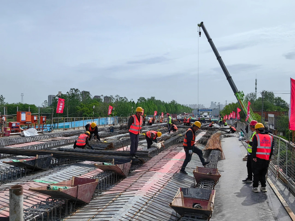 安徽建工集團(tuán)承建的合六路(南崗鎮(zhèn)-侯店路段)主線橋。合肥日報(bào)全媒體記者 張大崗 攝