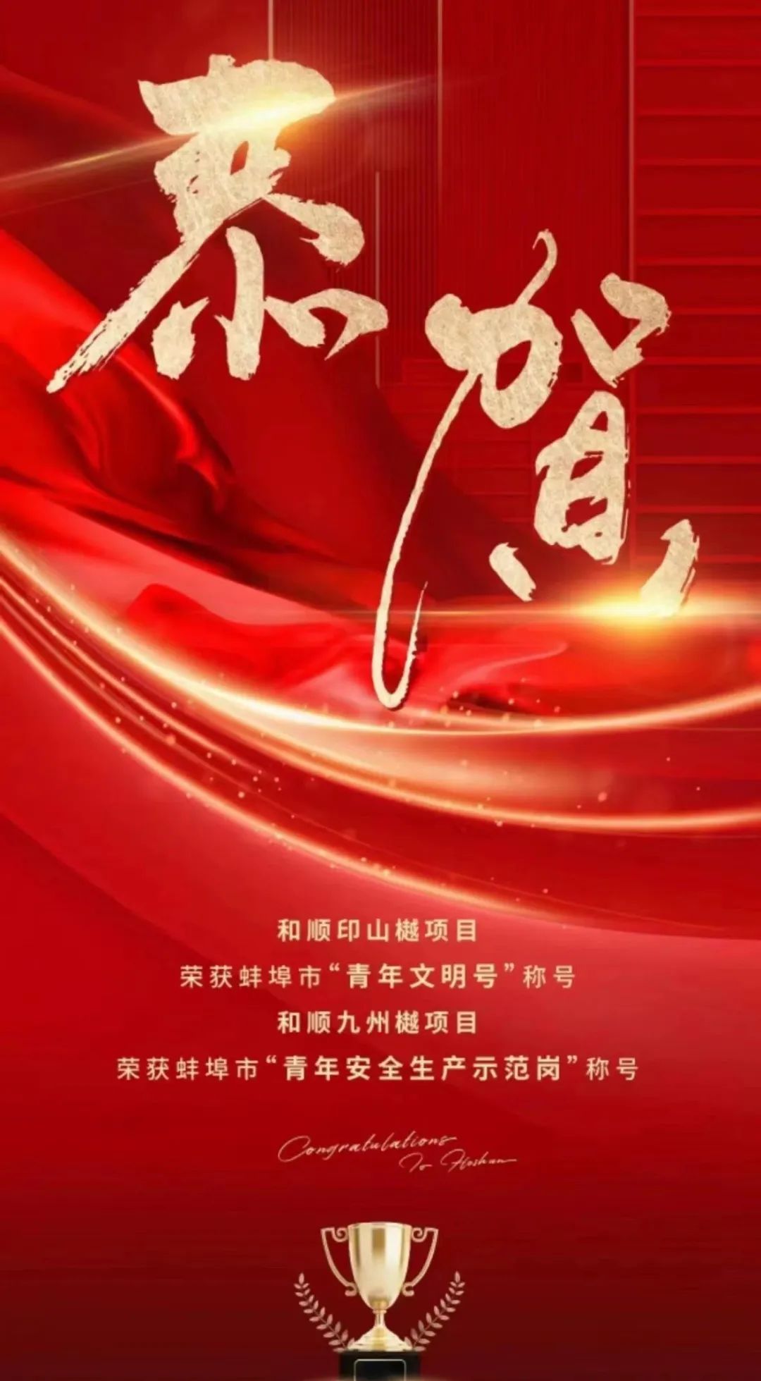 和順印山樾項目、和順九州樾項目分別榮獲2022年度蚌埠市“青年文明號”、“青年安全生產(chǎn)示范崗”稱號