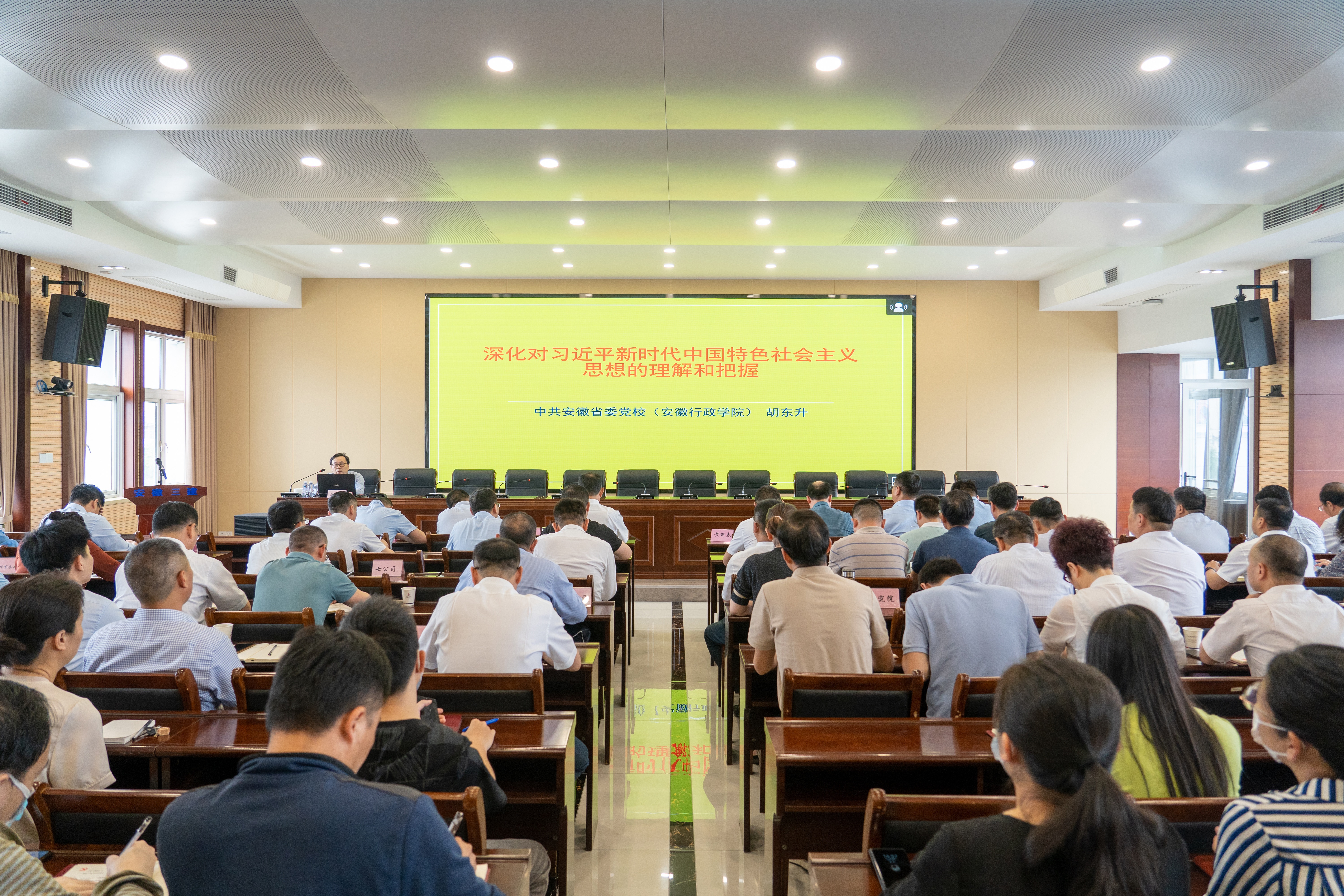 5月31日下午,安徽三建在五樓會(huì)議室舉辦學(xué)習(xí)貫徹習(xí)近平新時(shí)代中國(guó)特色社會(huì)主義思想主題教育讀書班專題輔導(dǎo)報(bào)告會(huì),邀請(qǐng)省委講師團(tuán)專家?guī)旄叨诵v專家、省委黨校(安徽行政學(xué)院)科學(xué)社會(huì)主義教研部主任胡東升教授作專題講解。會(huì)議由公司黨委副書記、工會(huì)主席黃麗春主持。