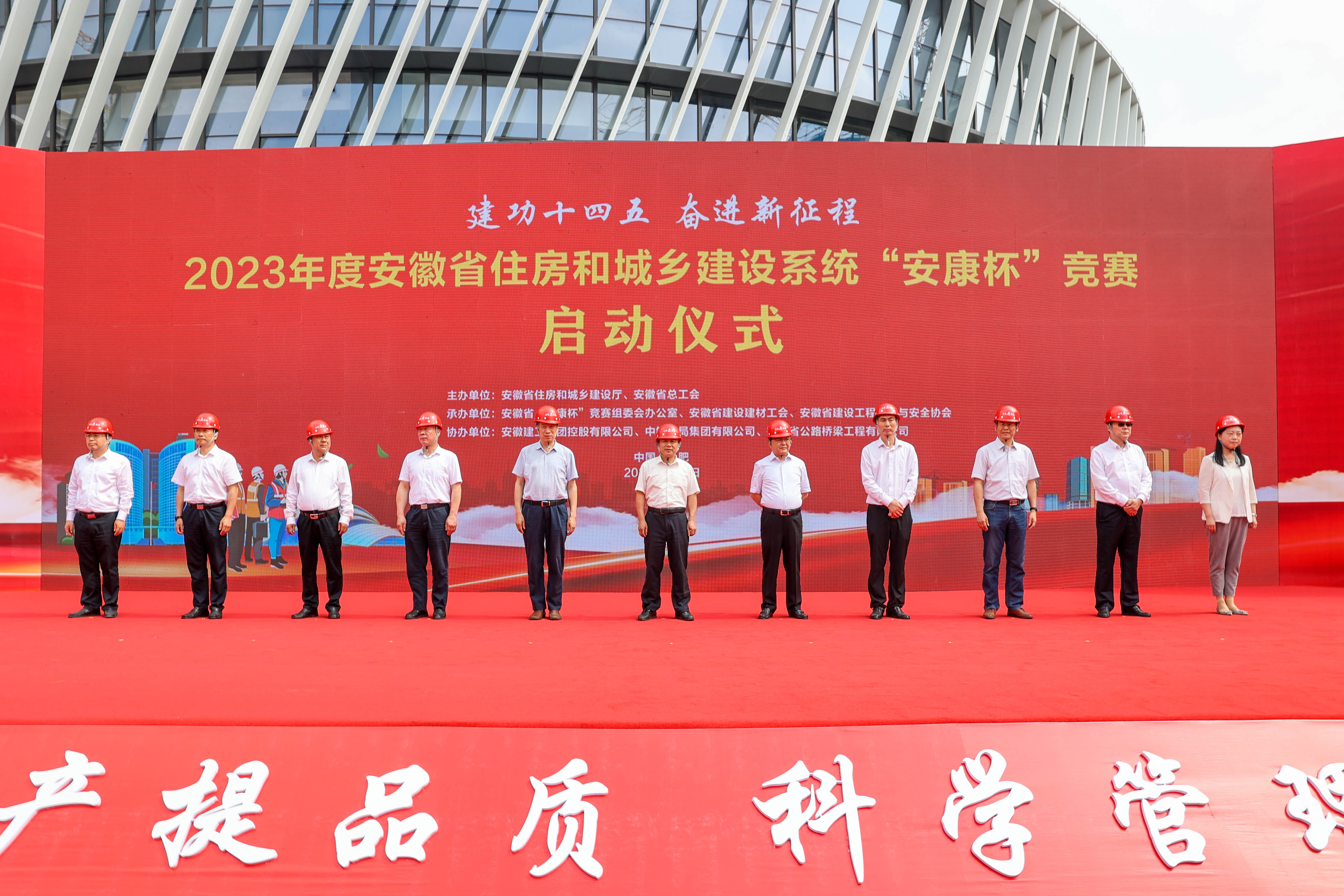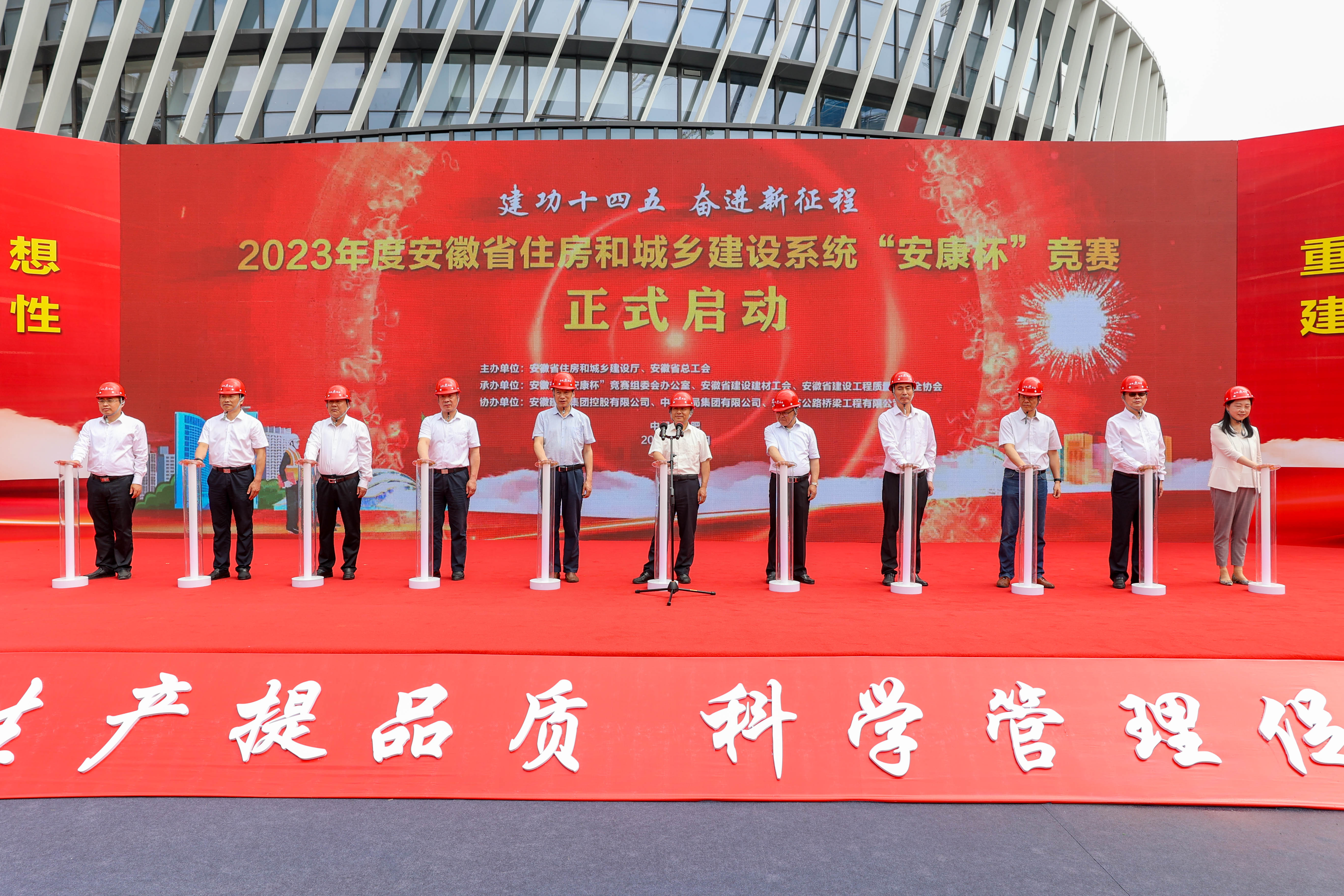 6月6日上午,由安徽省住房和城鄉(xiāng)建設(shè)廳、安徽省總工會(huì)主辦,安徽建工集團(tuán)控股有限公司、安徽省公路橋梁工程有限公司協(xié)辦的2023年度安徽省住房和城鄉(xiāng)建設(shè)系統(tǒng)“安康杯”競(jìng)賽啟動(dòng)儀式在安徽路橋桃花科創(chuàng)產(chǎn)業(yè)園EPC項(xiàng)目現(xiàn)場(chǎng)舉行。安徽省住房和城鄉(xiāng)建設(shè)廳二級(jí)巡視員王曉魁作競(jìng)賽動(dòng)員講話,安徽省總工會(huì)黨組成員、副主席陳金紅宣布競(jìng)賽啟動(dòng)。建工控股黨委委員、副總經(jīng)理孫學(xué)軍,肥西縣人民政府副縣長(zhǎng)權(quán)家柱分別致辭。