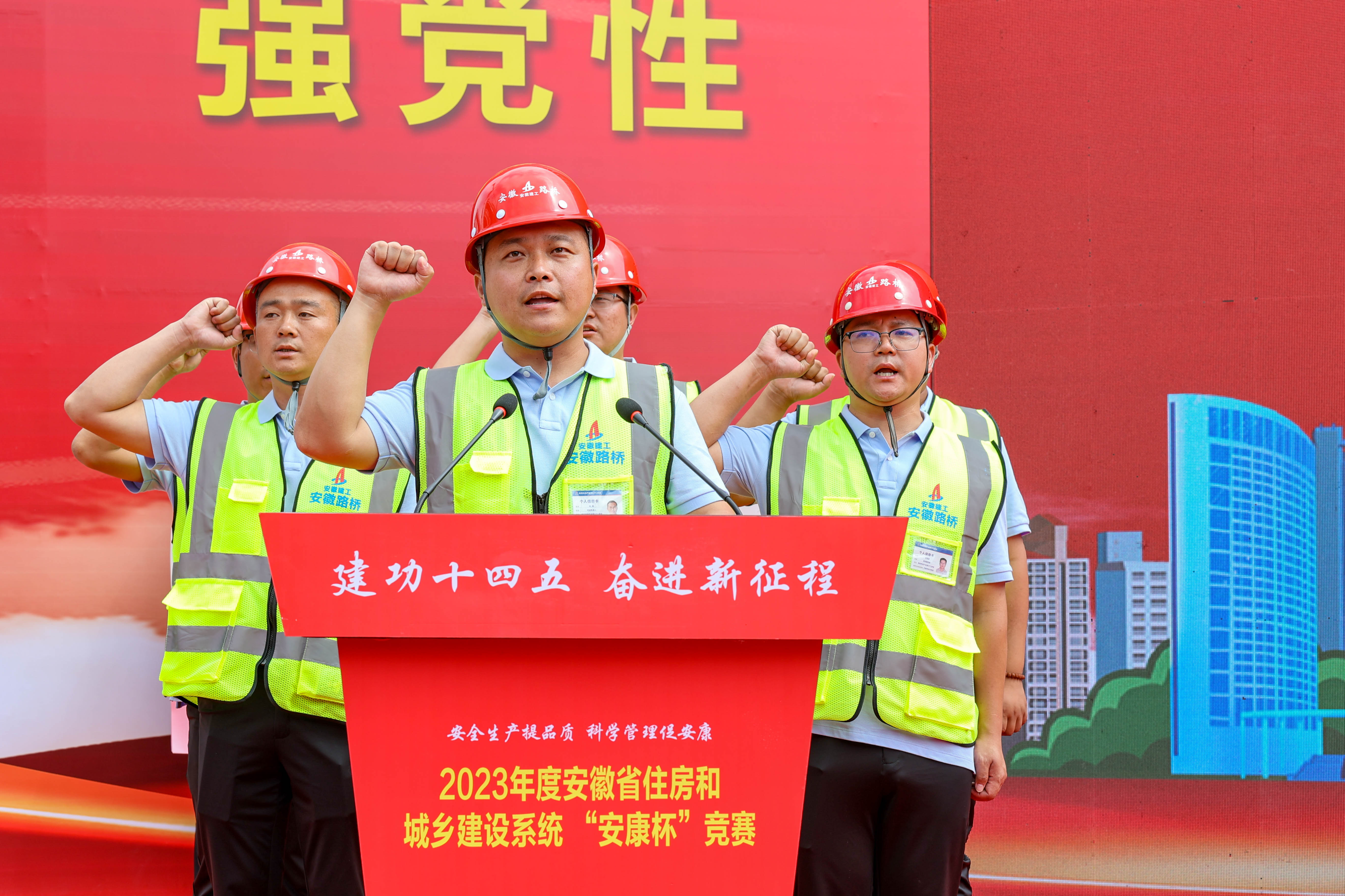 孫學(xué)軍在致辭中向省住建廳、省總工會(huì)對(duì)安徽建工集團(tuán)多年來(lái)的關(guān)心、信任和支持表示感謝。他指出,2022年以來(lái),安徽建工集團(tuán)按照省委省政府“將安徽建工集團(tuán)進(jìn)一步做強(qiáng)做優(yōu)做大,創(chuàng)一流業(yè)績(jī),爭(zhēng)當(dāng)中國(guó)建筑企業(yè)排頭兵”的指示要求,全面開啟“大發(fā)展、轉(zhuǎn)型發(fā)展、高質(zhì)量發(fā)展”新局面。他介紹了今年一季度集團(tuán)主要經(jīng)濟(jì)指標(biāo)完成情況及良好的發(fā)展勢(shì)頭,他表示,安徽建工集團(tuán)將以此次活動(dòng)為契機(jī),以更高站位強(qiáng)化思想認(rèn)識(shí),全面深入貫徹黨的二十大精神和習(xí)近平總書記關(guān)于安全生產(chǎn)工作重要指示精神,以實(shí)際行動(dòng)落實(shí)競(jìng)賽活動(dòng)各項(xiàng)部署要求,為推動(dòng)我省建筑業(yè)轉(zhuǎn)型高質(zhì)量發(fā)展,構(gòu)建平安安徽作出積極貢獻(xiàn)。