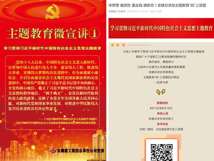 高起點統(tǒng)籌推進(jìn),做好“謀篇布局”文章。 2022年,安建總承包黨建領(lǐng)航轉(zhuǎn)型升級跨越式發(fā)展成就得到集團黨委、上級主管部門以及社會各界高度認(rèn)可,2023年初喜獲“全國住房和城鄉(xiāng)建設(shè)系統(tǒng)先進(jìn)集體”榮譽稱號。珍惜榮譽再接再厲,拉高標(biāo)桿奮勇爭先,立足新起點,奮進(jìn)新征程,尤須以科學(xué)理論指引前進(jìn)方向。主題教育動員號令發(fā)出后,安建總承包黨委迅速動員部署,成立主題教育領(lǐng)導(dǎo)小組,建立工作機制,制定工作方案,明確目標(biāo)要求和重點舉措,切實把理論學(xué)習(xí)、調(diào)查研究、推動發(fā)展、檢視整改和總結(jié)評估融會貫通、一體推進(jìn),實現(xiàn)精密落子、弈活全盤,激發(fā)主題教育最大效能,為主題教育高起點開局提供保障。