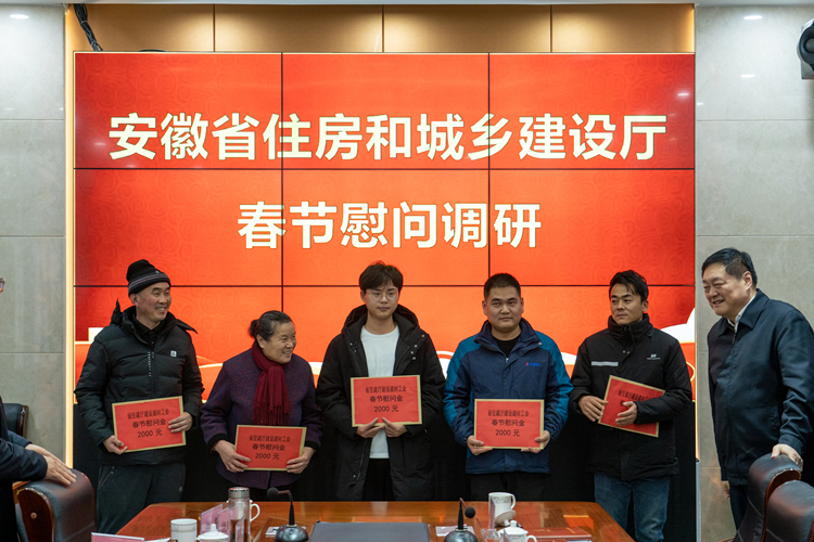在新春佳節(jié)即將到來之際,1月28日下午,省住建廳黨組書記、廳長賀懋燮一行來到安徽建工集團所屬安徽三建公司走訪慰問困難職工并召開座談會,送來廳黨組的關心關懷。廳黨組成員、副廳長吳桂和,廳黨組成員、副廳長陳揚年,廳黨組成員、總工方廷勇,建工控股黨委副書記、總經理劉家靜,黨委委員、紀委書記、監(jiān)察專員王汪苗陪同慰問。