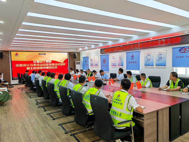 公司領(lǐng)導(dǎo)班子帶頭學(xué)習(xí),以第一站位示范帶動,先學(xué)一步、學(xué)深一層,率先垂范帶動廣大黨員職工自覺學(xué)習(xí)。7月3日上午,公司黨委組織召開專題學(xué)習(xí)會,原原本本學(xué)習(xí)了集團(tuán)黨委書記、董事長楊善斌作的《全面推進(jìn)深化改革 全面推進(jìn)創(chuàng)新發(fā)展 奮力開創(chuàng)安徽建工集團(tuán)大發(fā)展、轉(zhuǎn)型發(fā)展、高質(zhì)量發(fā)展新局面》主題教育專題黨課報告,并對照相關(guān)工作部署,認(rèn)真研究工作落實(shí)方案,細(xì)化分解工作任務(wù),確保會議精神在公司落地生根。