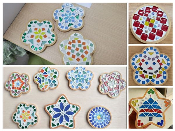 杯墊制作看似簡單,但想要把一顆顆又小又滑溜的馬賽克石有設(shè)計(jì)感的拼貼在一起,很考驗(yàn)?zāi)托?。制作過程中,團(tuán)員青年們積極交流,彼此交換手作心得,團(tuán)結(jié)協(xié)作,互幫互助,活動現(xiàn)場氣氛和諧融洽。