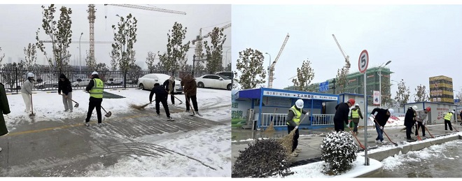 潭沖河家園項(xiàng)目部聯(lián)合監(jiān)理部開展安全隱患檢查,共同清掃項(xiàng)目駐地及現(xiàn)場(chǎng)道路積雪。