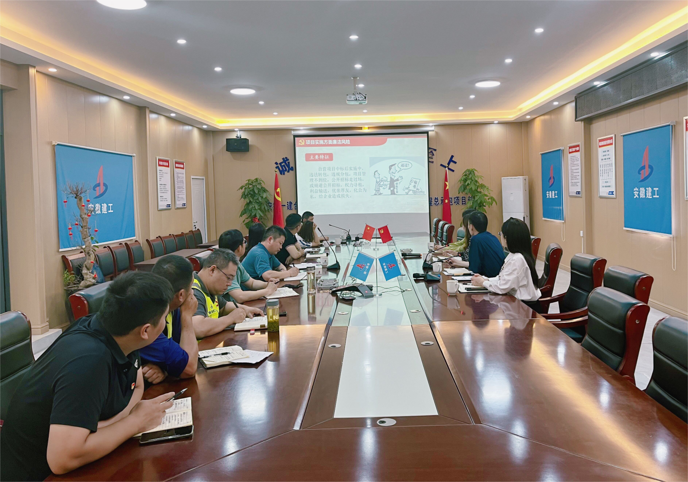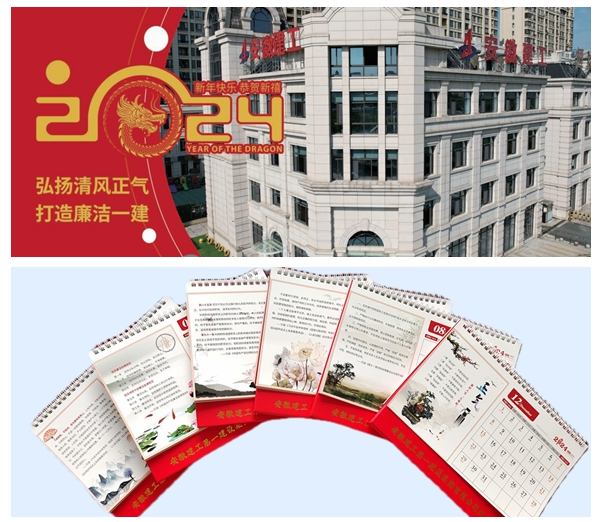嚴(yán)把廉潔關(guān)、作風(fēng)關(guān),不斷探索創(chuàng)新廉潔文化方式載體,讓廉潔教育“藥效”更強,更有滲透力,不斷拓展廉潔教育的深度和廣度。印制一份廉政教育臺歷,以“弘揚清風(fēng)正氣 打造廉潔一建”為主題,緊扣廉潔自律內(nèi)容,選取習(xí)近平總書記的重要講話和論述,節(jié)選《廉政賬房制度》《項目經(jīng)理廉潔從業(yè)提示函》等公司廉潔從業(yè)重點制度文件,編制每月一條“廉潔警句”,將廉政臺歷發(fā)放給中層及以上領(lǐng)導(dǎo)干部、項目部班子及關(guān)鍵崗位人員,在潛移默化中把規(guī)章制度內(nèi)化于心,著力打造獨具一格的“桌面”廉潔文化。定制一面“風(fēng)紀(jì)鏡”,放置于安慶總部一樓大廳,不僅是督促干部職工規(guī)范自身的衣著、儀態(tài)和精神面貌,更是要求大家要對照自身,每日自省己心,做到“正衣冠、知敬畏、守底線”。