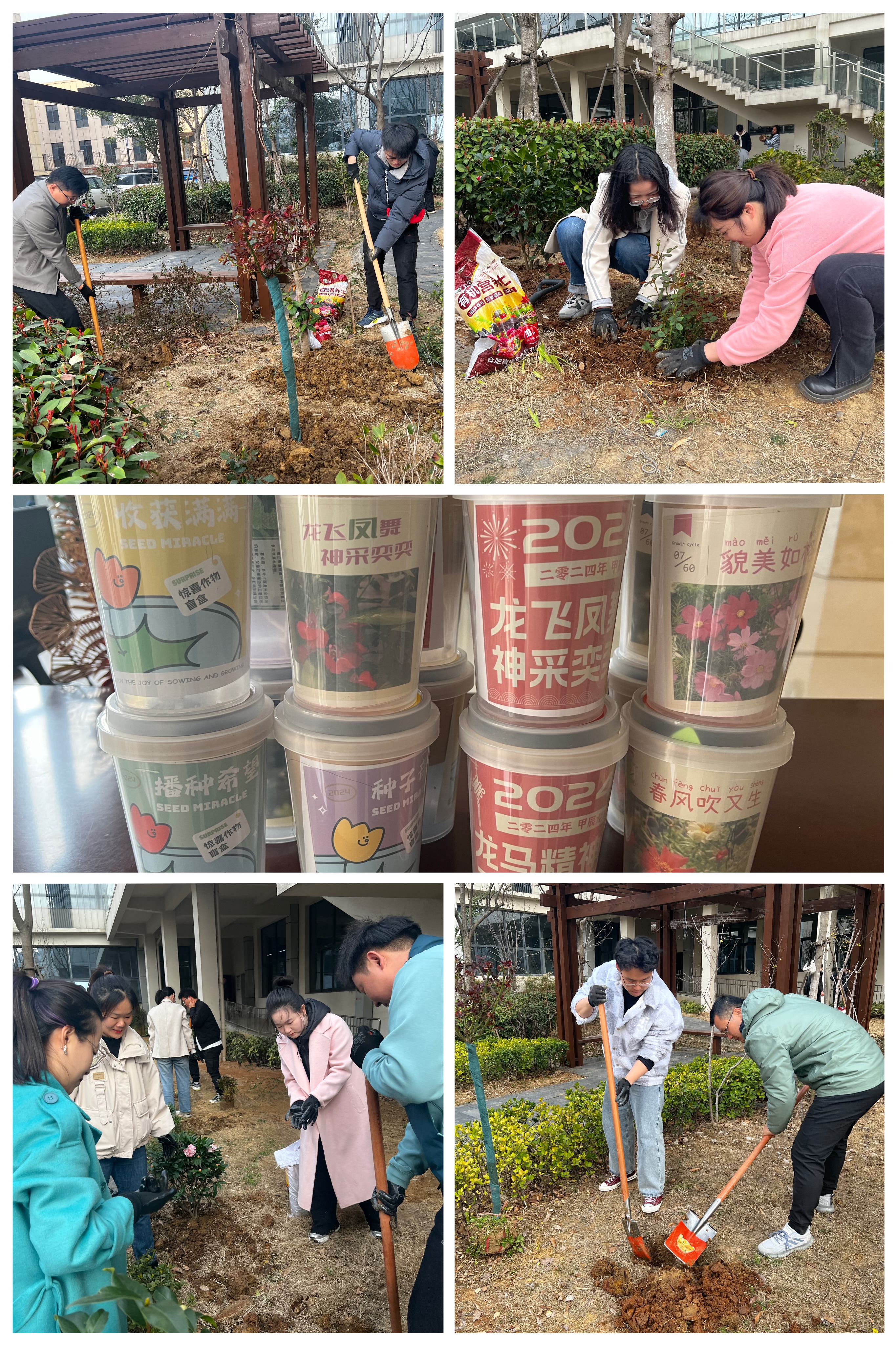 活動現(xiàn)場,青年志愿者們?nèi)迦艘唤M,揮鍬鏟土、扶苗培土、圍堰澆水,相互配合,種下芍藥、茶花、月季等花苗。一上午的揮汗奮戰(zhàn),70余株苗木在建科園區(qū)安家落戶。經(jīng)過幾場大雪變得枯黃的草地瞬間春意盎然,一株株苗木迎風挺立,在園區(qū)一角煥發(fā)出勃勃生機?;顒幼詈螅簣F委準備了富有寓意的種子盲盒,供各位志愿者抽取帶回,期待他們可以栽種希望,收獲美好。