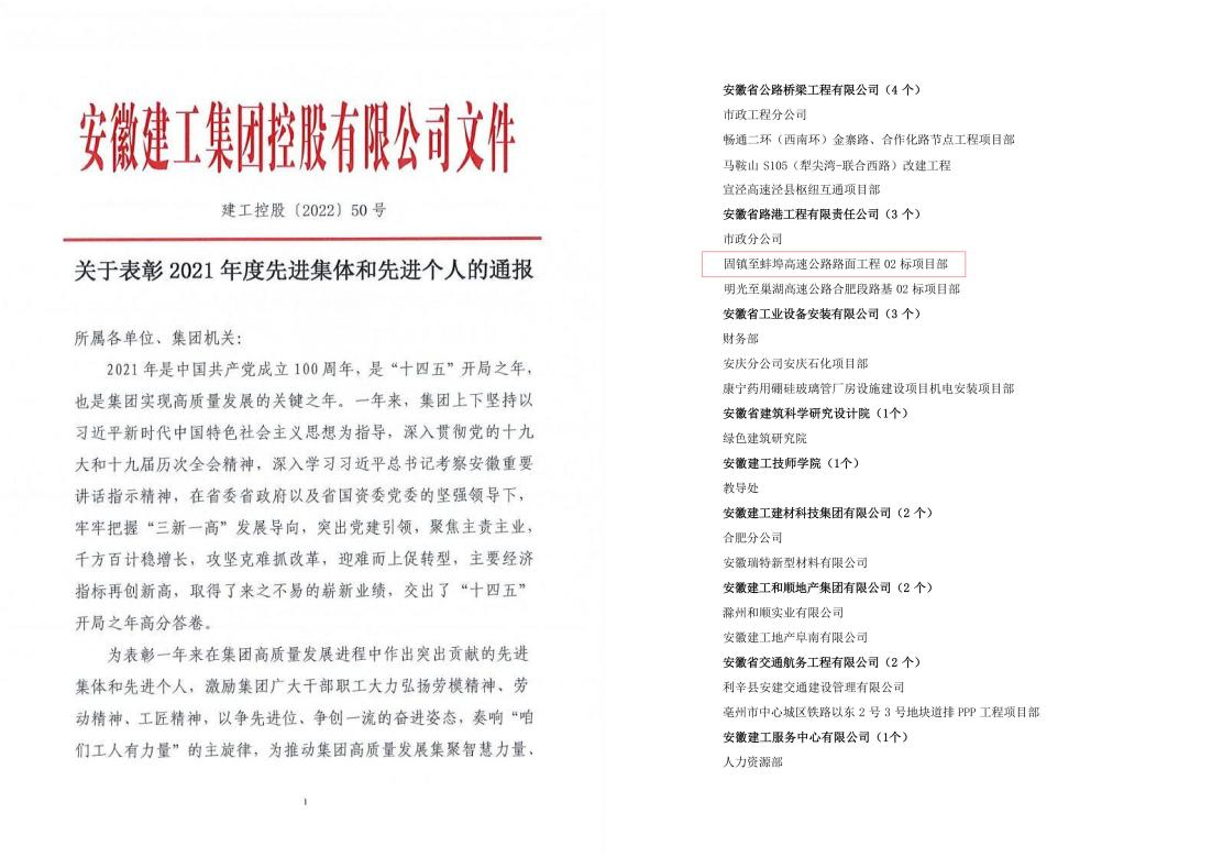 在臨渙船閘、固蚌高速、壽潁高速等項目建設(shè)過程中,面對臨渙船閘120米的系桿拱、固蚌高速路面的縣縣通、壽潁高速路基的100萬土源等諸多問題,他都積極主動,有擔當、有作為、不推諉、不退縮,建立問題清單,逐一銷號,解決了施工過程中的難題,確保每個項目均能按期交工,并取得良好的經(jīng)濟效益。其中固蚌高速項目更是在兩個月的時間內(nèi)完成了22萬噸瀝青混凝土的攤鋪,在五個月的時間內(nèi)完成了近100萬噸的水穩(wěn)、瀝青的攤鋪,該項目榮獲了集團和公司先進集體榮譽稱號。