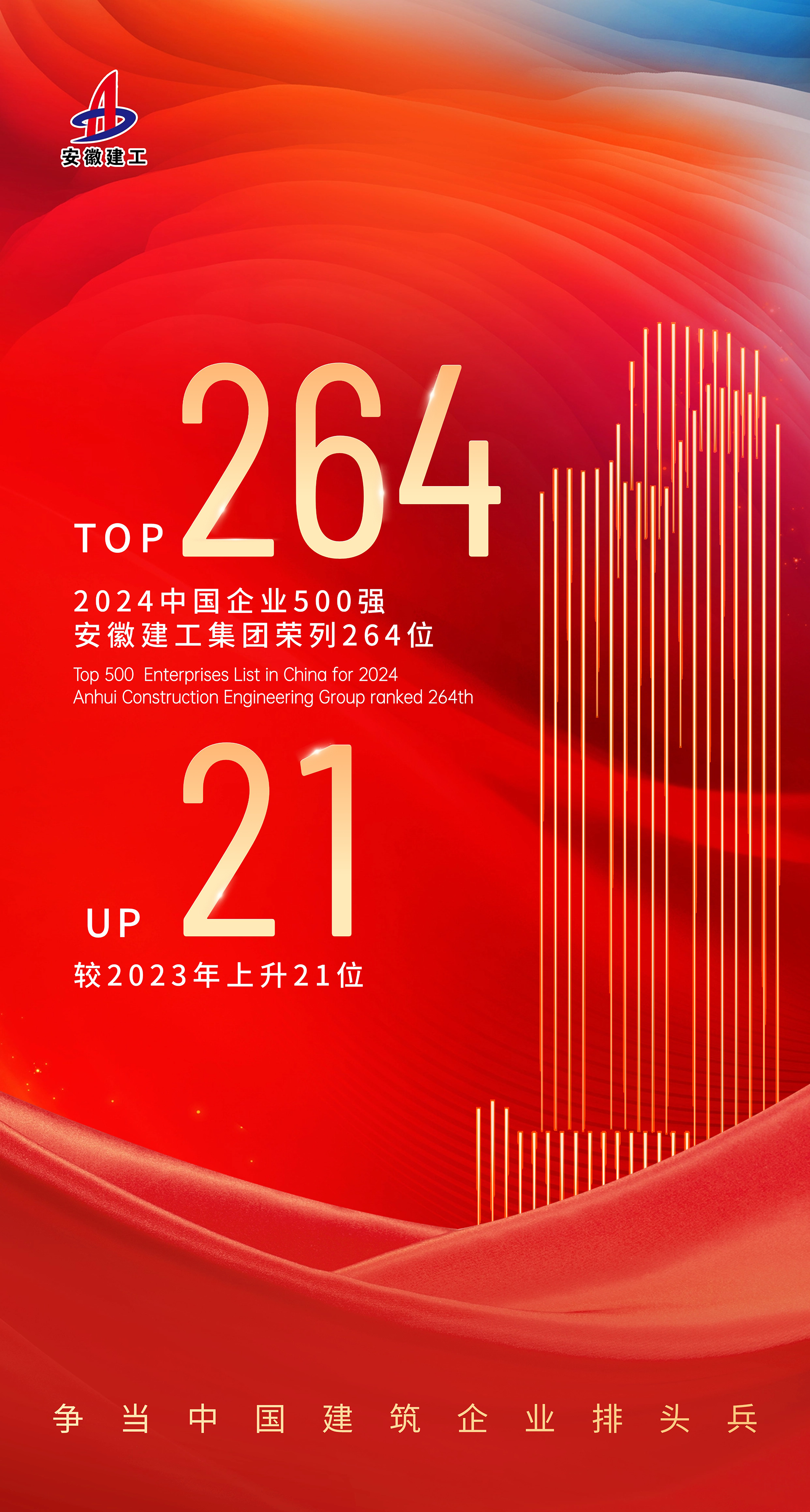9月11日,中國企業(yè)聯(lián)合會、中國企業(yè)家協(xié)會發(fā)布2024中國企業(yè)500強榜單。安徽建工集團以954.26億元的營業(yè)收入位列榜單第264位,較2023年的285位提升21位,連續(xù)16年榮登中國企業(yè)500強,行業(yè)認可度、品牌及社會影響力有效提升。