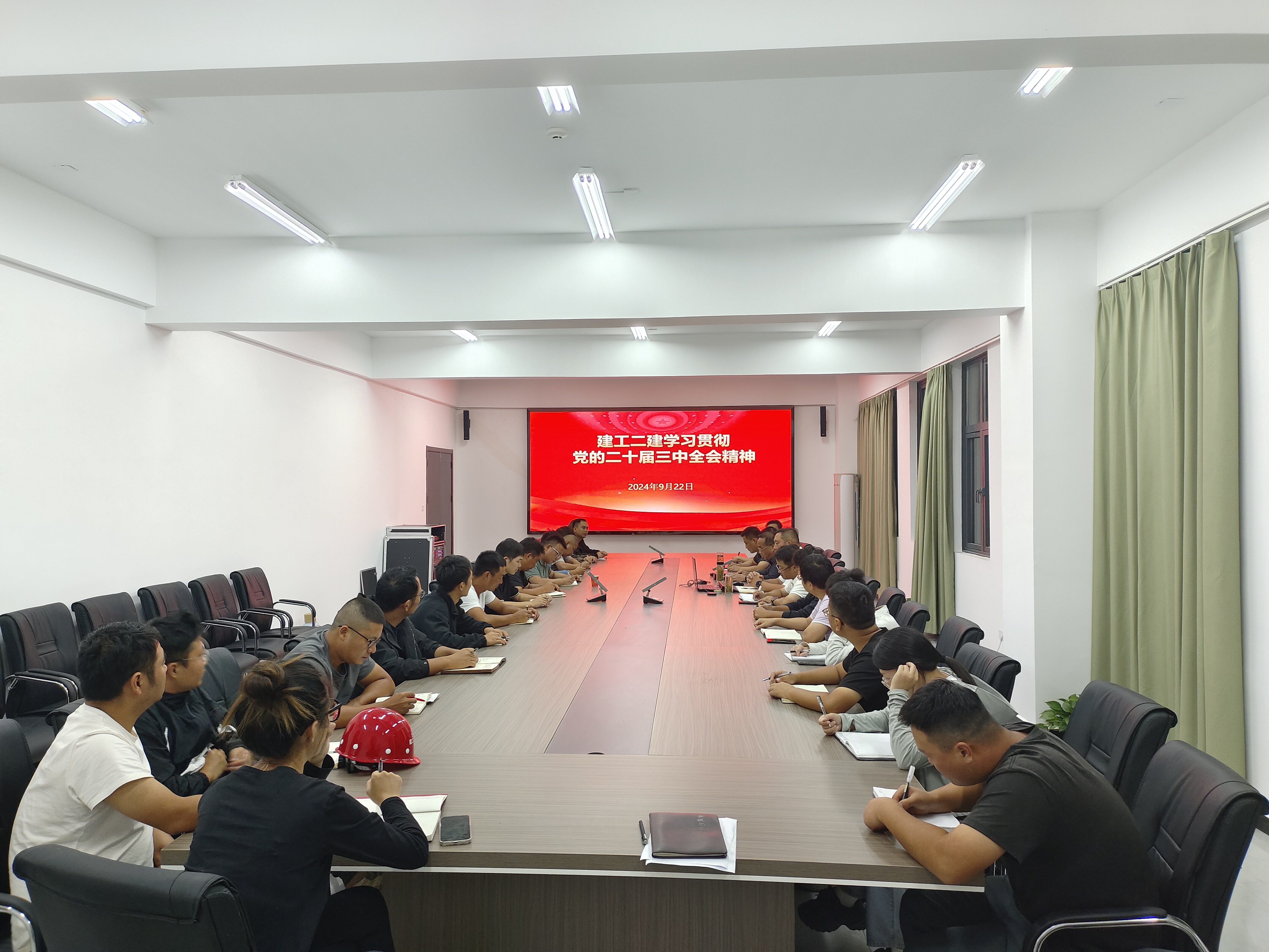 9月22日,建工二建副總經(jīng)理代鵬飛赴蕪湖新材料智能智造產(chǎn)業(yè)園項(xiàng)目宣講黨的二十屆三中全會(huì)精神。蕪湖中丞濱江時(shí)代項(xiàng)目、安徽建工蕪湖新材料智能智造產(chǎn)業(yè)園項(xiàng)目、安徽路橋鋼結(jié)構(gòu)橋梁制造產(chǎn)業(yè)化基地(蕪湖)項(xiàng)目全體管理人員參加學(xué)習(xí)。