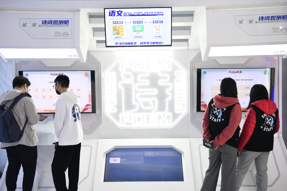 ??2022年11月17日,觀眾在于安徽合肥舉辦的第五屆世界聲博會上體驗(yàn)教育領(lǐng)域智能產(chǎn)品。