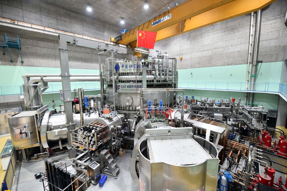 ??這是在安徽合肥科學(xué)島拍攝的“人造太陽”——全超導(dǎo)托卡馬克核聚變實(shí)驗(yàn)裝置(EAST)(2021年4月13日攝)。