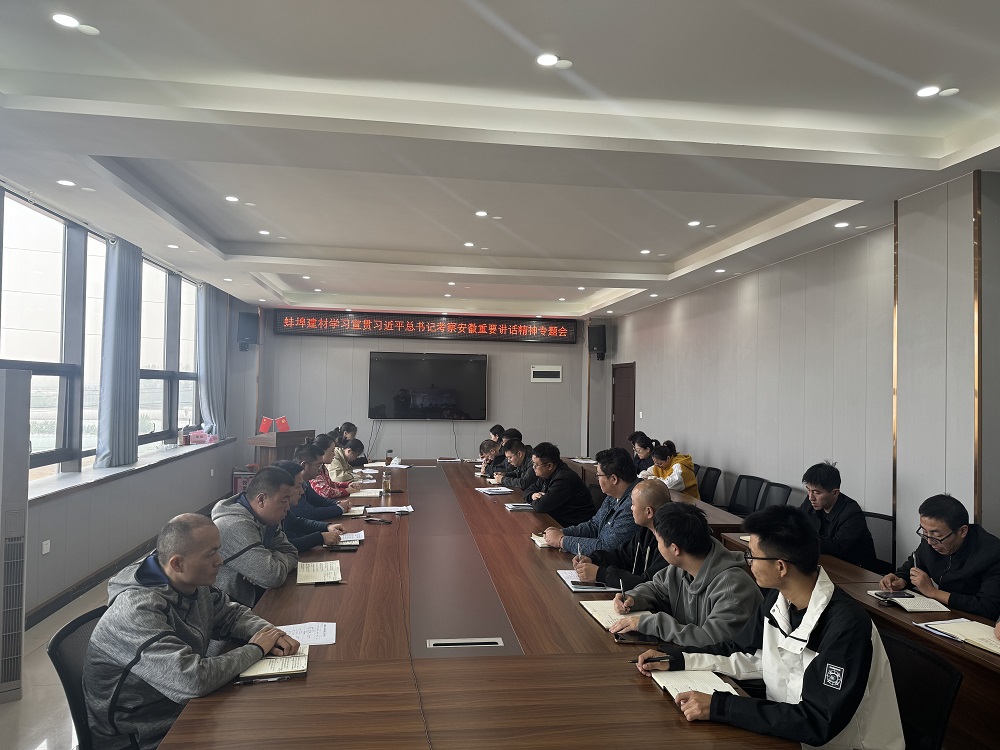 蚌埠建材組織召開學(xué)習(xí)傳達習(xí)近平總書記考察安徽重要講話精神專題會,公司領(lǐng)導(dǎo)班子、中層副職及以上管理人員、部分黨員和青年團員代表參加會議。會議要求,各中心、各站點要以學(xué)習(xí)習(xí)近平總書記在安徽考察時的重要講話精神為契機,將習(xí)近平總書記的講話精神轉(zhuǎn)化為實干擔(dān)當(dāng)?shù)膹姶髣恿?,堅持目?biāo)不變、任務(wù)不減,迎難而上,奮發(fā)奮進,為完成全年目標(biāo)任務(wù)而努力奮斗。