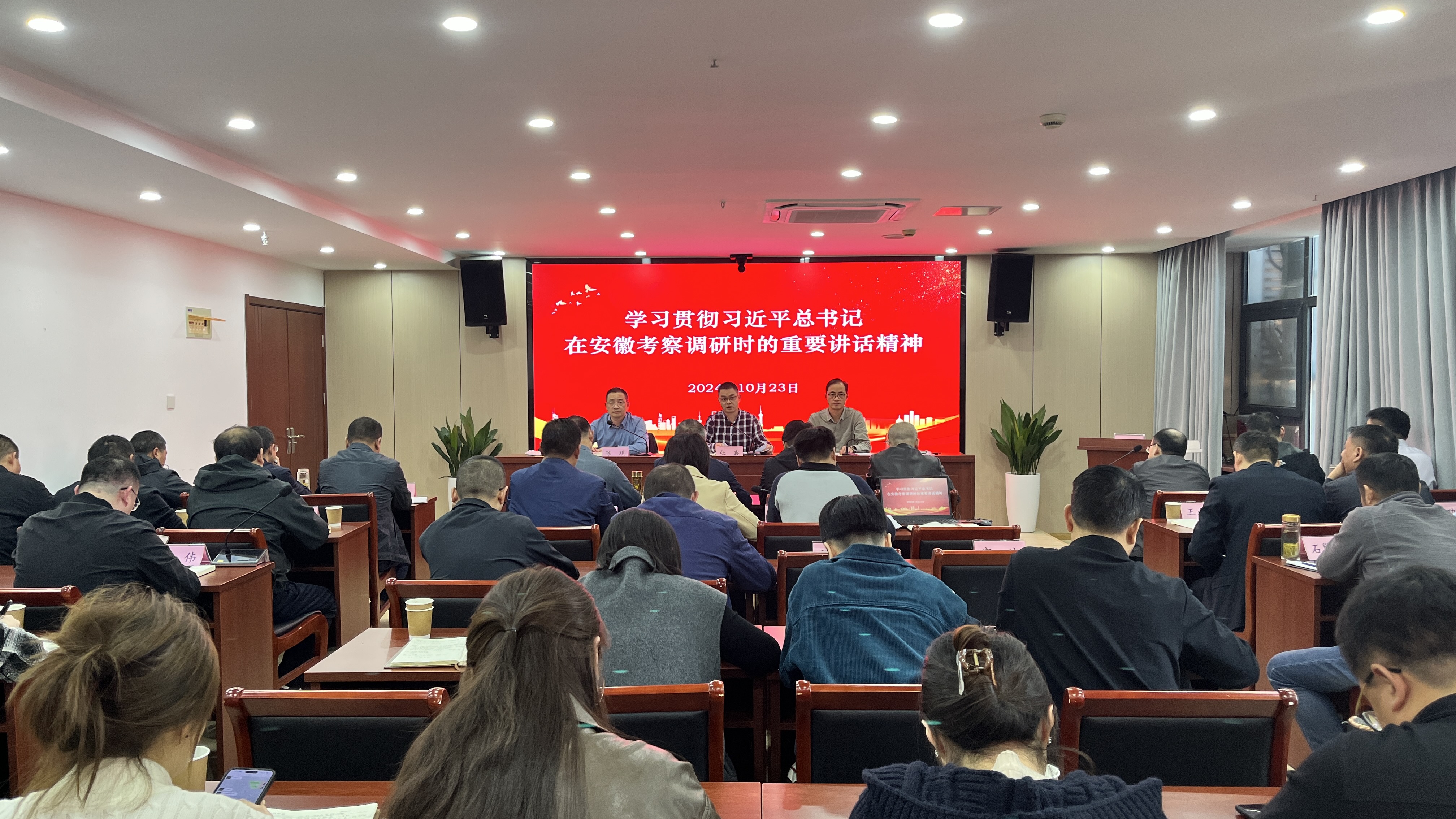 會議指出,學習宣貫習近平總書記考察安徽重要講話精神是當前和今后一個時期的重大政治任務。公司上下要迅速掀起學習宣傳貫徹熱潮,各單位要提高政治站位,深化思想認識,切實增強貫徹落實習近平總書記考察安徽重要講話精神的政治自覺、思想自覺和行動自覺。要通過工作會、周例會、“三會一課”和主題黨日等多種形式,深刻把握總書記講話的豐富內涵和精神實質,堅決扛起深化國資國企改革的重大責任,推動中央、省委、省國資委及集團黨委重大部署在公司落地見效,以實際行動衷心擁護“兩個確立”,忠誠踐行“兩個維護”。