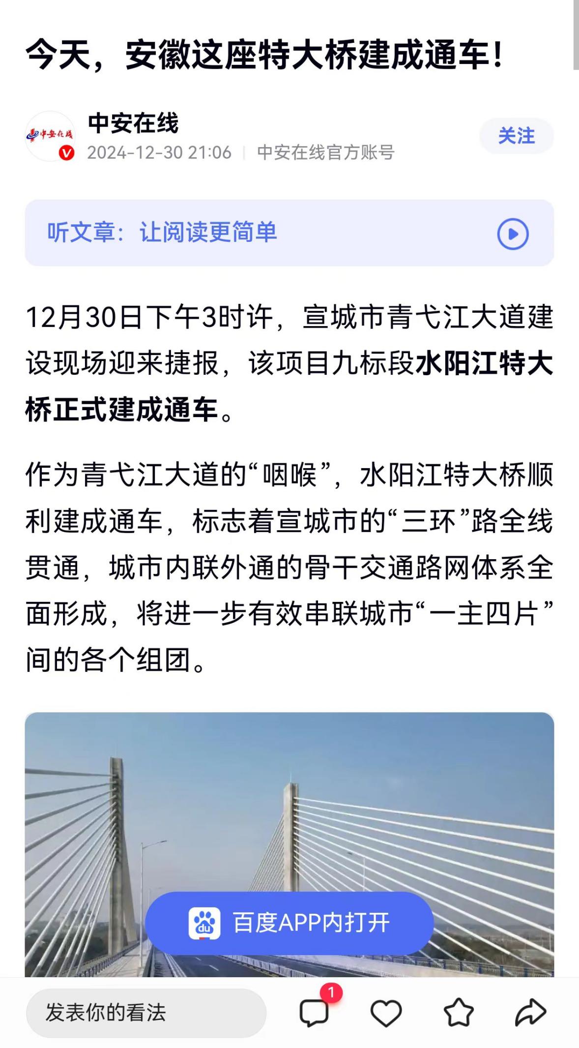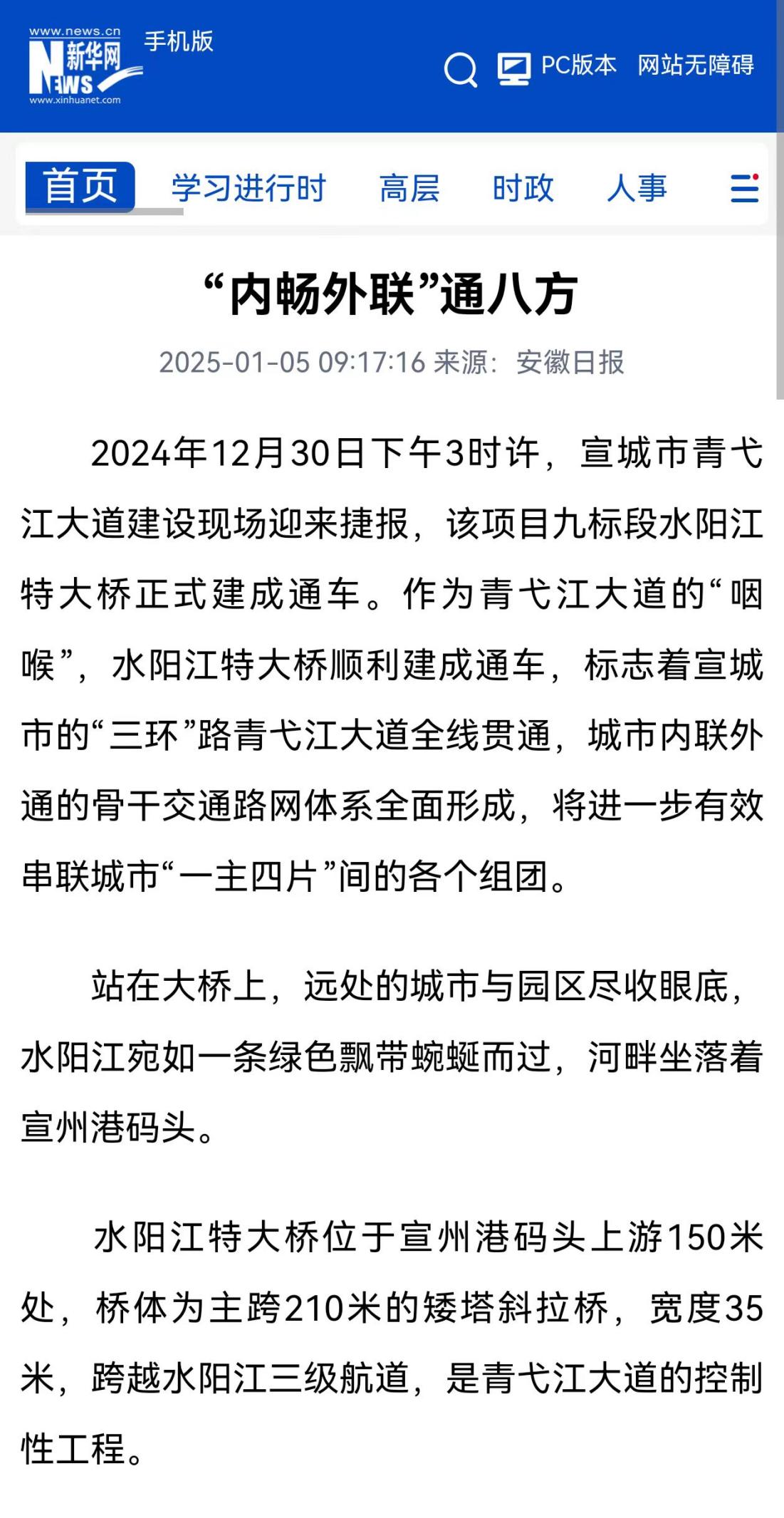 近日,建工路港承建的宣城市青弋江大道水陽(yáng)江特大橋正式建成通車,受到安徽日?qǐng)?bào)紙媒、新華網(wǎng)、中安在線等多個(gè)主流媒體關(guān)注報(bào)道。