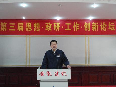 為加強思想政治研究工作,促進各項工作的創(chuàng)新,推動企業(yè)又好又快發(fā)展,12月25日下午,安徽建機公司隆重舉辦了第三屆思想·政研·工作·創(chuàng)新論壇。公司黨委書記王愛國,總工程師、副總經(jīng)理潘友杰,總會計師汪元貴、總經(jīng)理助理、辦公室主任張育軍、黨工部主任宋繼芳、工會副主席陳煒共同出席了這次論壇,來自各單位、部門領(lǐng)導(dǎo)及參與交流人員30余人參加此次論壇。論壇由黨工部主任宋繼芳主持。