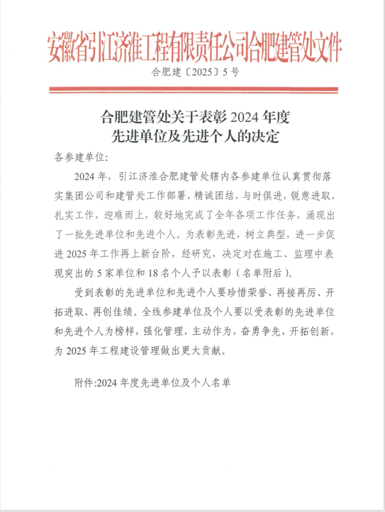近日,建工路港高新區(qū)2號棄渣場復(fù)墾工程項目部受到業(yè)主單位安徽省引江濟淮工程有限責(zé)任公司合肥建管處表彰,合肥建管處授予項目部“優(yōu)秀項目部”榮譽稱號,授予項目職工李利郎“質(zhì)量管理先進個人”、謝旭東“安全管理先進個人”、楊正“信訪維穩(wěn)(農(nóng)民工工資支付保障)先進個人”榮譽稱號。