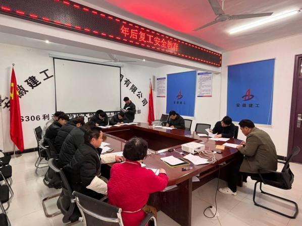 專題會(huì)議謀安全,嚴(yán)守安全底線。項(xiàng)目積極響應(yīng)公司節(jié)后復(fù)工復(fù)產(chǎn)要求,強(qiáng)化統(tǒng)籌部署,開(kāi)展復(fù)工復(fù)產(chǎn)安全工作部署會(huì)議,對(duì)關(guān)鍵崗位人員進(jìn)行了重點(diǎn)培訓(xùn)和考核,同時(shí)針對(duì)新進(jìn)場(chǎng)及轉(zhuǎn)崗人員進(jìn)行“三級(jí)安全教育”,持續(xù)夯實(shí)安全管理根基,筑牢安全生產(chǎn)防線。項(xiàng)目部建立項(xiàng)目復(fù)工任務(wù)臺(tái)賬,動(dòng)態(tài)跟蹤復(fù)工人員到崗情況,調(diào)整班組分工,全力推進(jìn)項(xiàng)目復(fù)工復(fù)產(chǎn)。