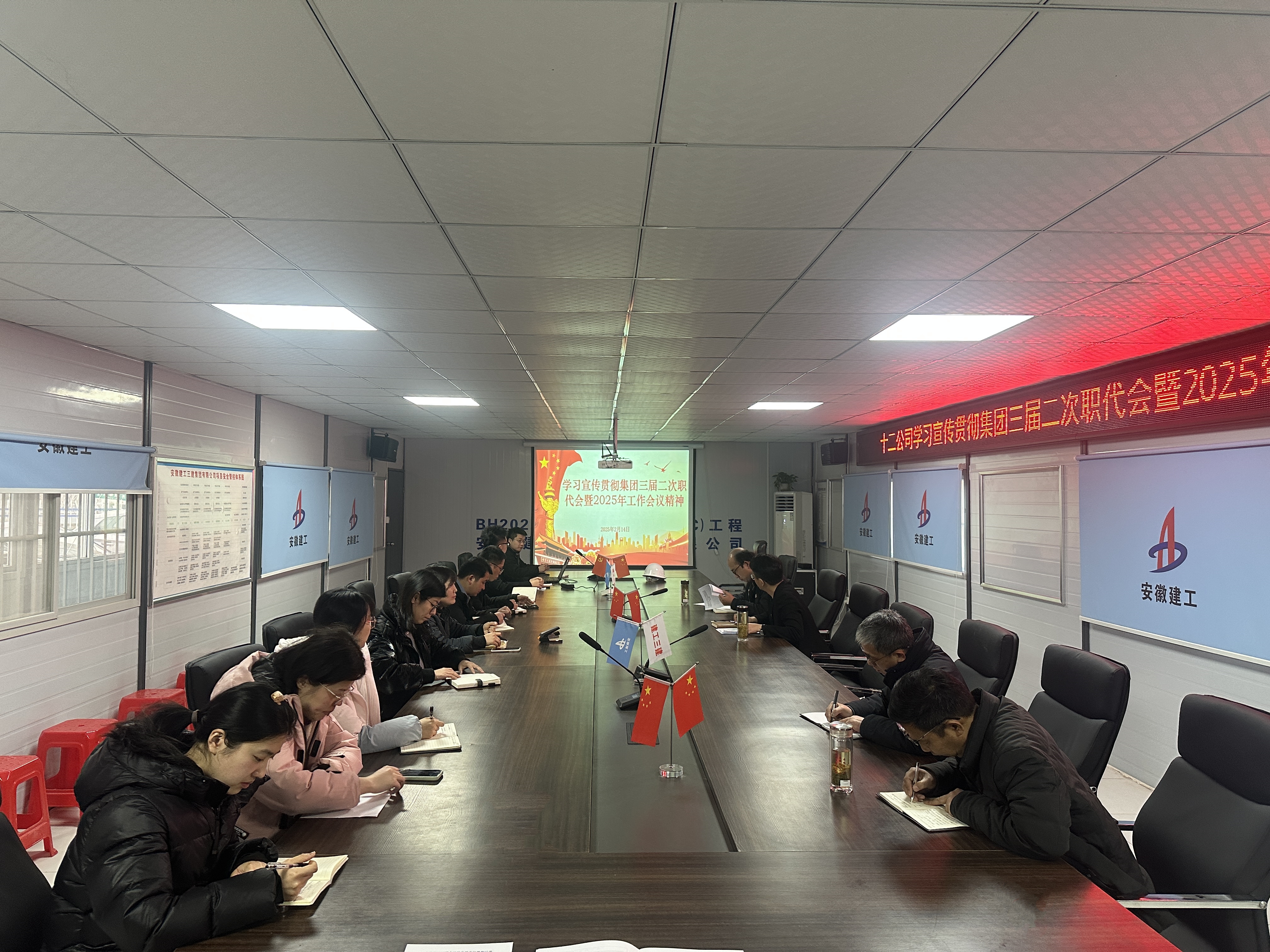 2月9日至12日,安徽建工集團(tuán)控股有限公司三屆二次職工代表大會暨2025年工作會議勝利召開。會后,建工三建所屬各單位通過多種形式,傳達(dá)學(xué)習(xí)集團(tuán)黨委書記、董事長楊善斌作的題為《改革創(chuàng)新 擔(dān)當(dāng)作為 強(qiáng)化企業(yè)管理 加快轉(zhuǎn)型升級 奮力推進(jìn)安徽建工集團(tuán)高質(zhì)量發(fā)展大發(fā)展》講話精神和集團(tuán)黨委委員、總會計師王淑德作的《集團(tuán)年度工作報告》精神,迅速掀起學(xué)習(xí)宣貫熱潮,確保會議精神傳達(dá)到每一位職工,進(jìn)一步統(tǒng)一思想、凝心聚力,為推動集團(tuán)轉(zhuǎn)型發(fā)展、高質(zhì)量發(fā)展、大發(fā)展貢獻(xiàn)力量。