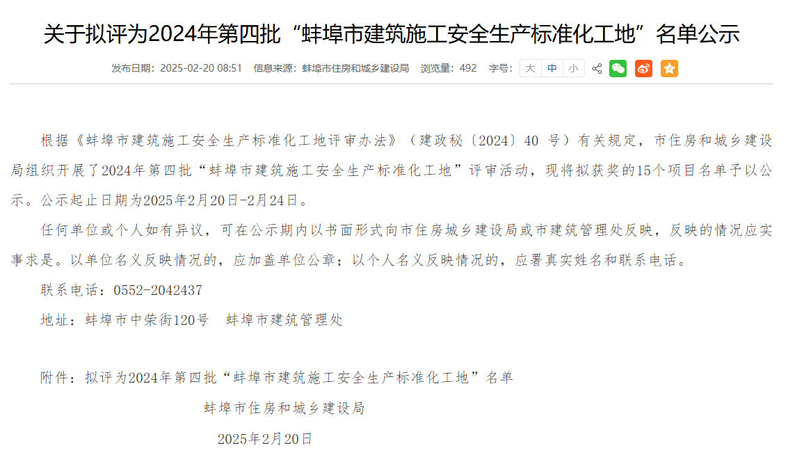 近日,建工水利承建的延安路大橋及接線工程、淮光嘉苑二期安置房項目、五河縣綜合物流園項目憑借高標準的安全管理體系與規(guī)范化施工,獲評“蚌埠市建筑施工安全生產(chǎn)標準化示范工地”榮譽稱號。
