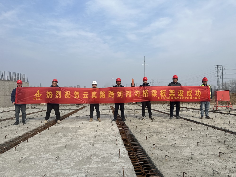 3月9日下午,隨著最后一片預(yù)制箱梁精準(zhǔn)就位,建工建投集團(tuán)淮北市高鐵西站綜合開發(fā)項(xiàng)目云集路跨劉河溝橋梁板架設(shè)圓滿完成。