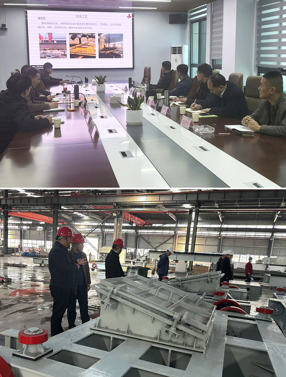 3月20日,建工水利馬溝泵站閘門、卷揚啟閉機等設備出廠驗收會議在建工水利工業(yè)園組織召開。項目五方責任主體參會,監(jiān)理單位主持。