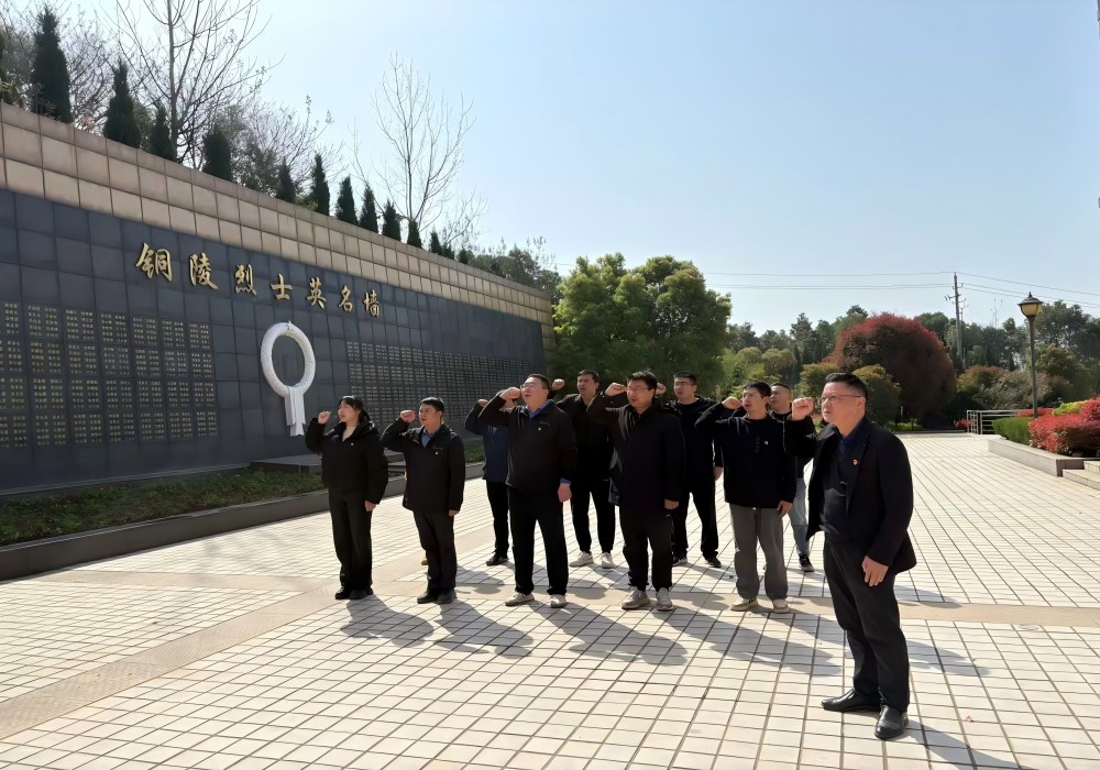 全體參與人員身著黑色上衣,列隊(duì)前往烈士紀(jì)念塔敬獻(xiàn)鮮花,集體默哀致敬。隨后,我們移步烈士陵園,在黨旗下重溫入黨誓詞,鏗鏘誓言回蕩于蒼松翠柏之間,彰顯新時(shí)代黨員的堅(jiān)定信念。最后,在烈士紀(jì)念館中,我們跟隨講解員回顧銅陵地區(qū)革命斗爭(zhēng)歷史,通過珍貴文物和影像資料深切感悟先烈英勇無(wú)畏的奉獻(xiàn)精神。