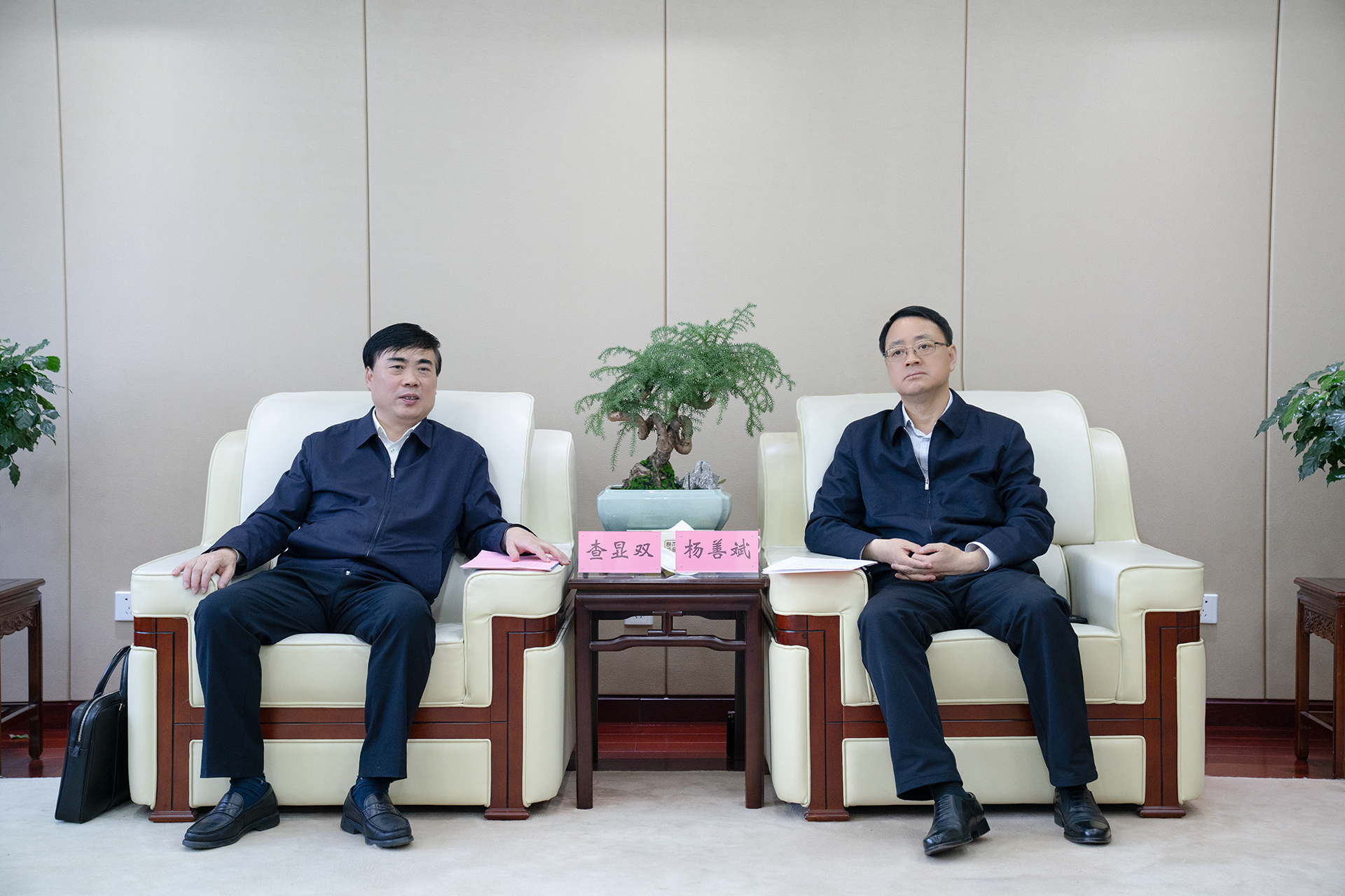 4月16日上午,中石化安徽石油分公司代表、黨委書記查顯雙一行到訪安徽建工集團交流洽談。集團黨委書記、董事長楊善斌熱情接待。