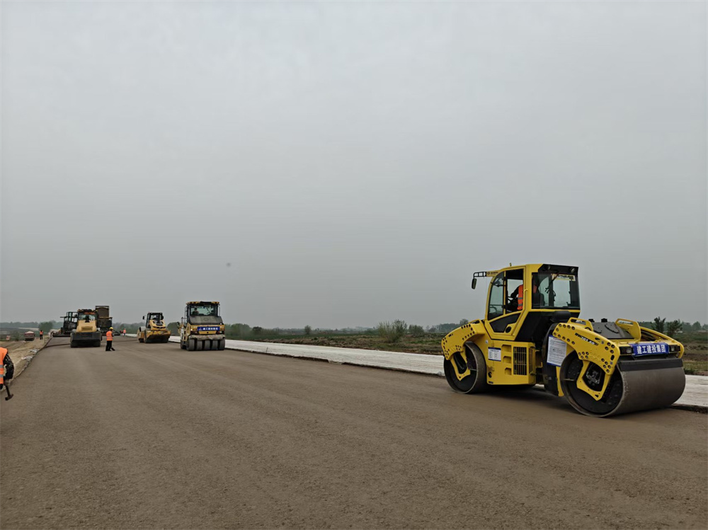在定遠(yuǎn)G328項目建設(shè)現(xiàn)場,攪拌機、攤鋪機、挖掘機、裝載機等重型機械正忙碌作業(yè)。項目前期交地部分已完成4.6公里路基交驗工作,計劃5月中上旬完成全部路基交驗工作;水穩(wěn)底基層已覆蓋完成3.8公里,目前水穩(wěn)下基層正大面積施工,橋梁工程正進(jìn)行下部結(jié)構(gòu)施工。自項目啟動以來,項目團隊積極調(diào)配人力、物力,工程技術(shù)人員日夜堅守崗位,全力推進(jìn)項目建設(shè)。