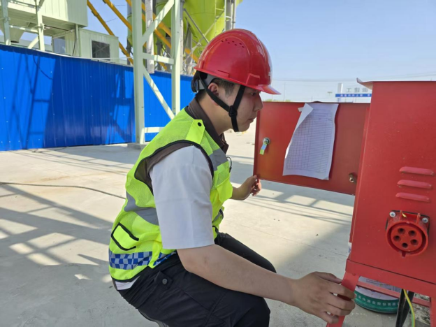 在 S02 徐商高速宿州段路基 03 標場站建設工地,安全部部長史浩然每日清晨便開始對拌和站進行安全巡查。他仔細檢查設備防護裝置、作業(yè)人員勞保用品佩戴情況以及臨時用電規(guī)范等細節(jié),不放過任何一處安全隱患,為即將到來的全面施工階段筑牢安全基礎。工程部部長張永兵則將工作重心放在拌和站和鋼筋廠的質量管控上,他反復研究圖紙和技術資料,認真檢查設備調試情況,精心優(yōu)化施工方案,力求為工程質量提供堅實保障。
