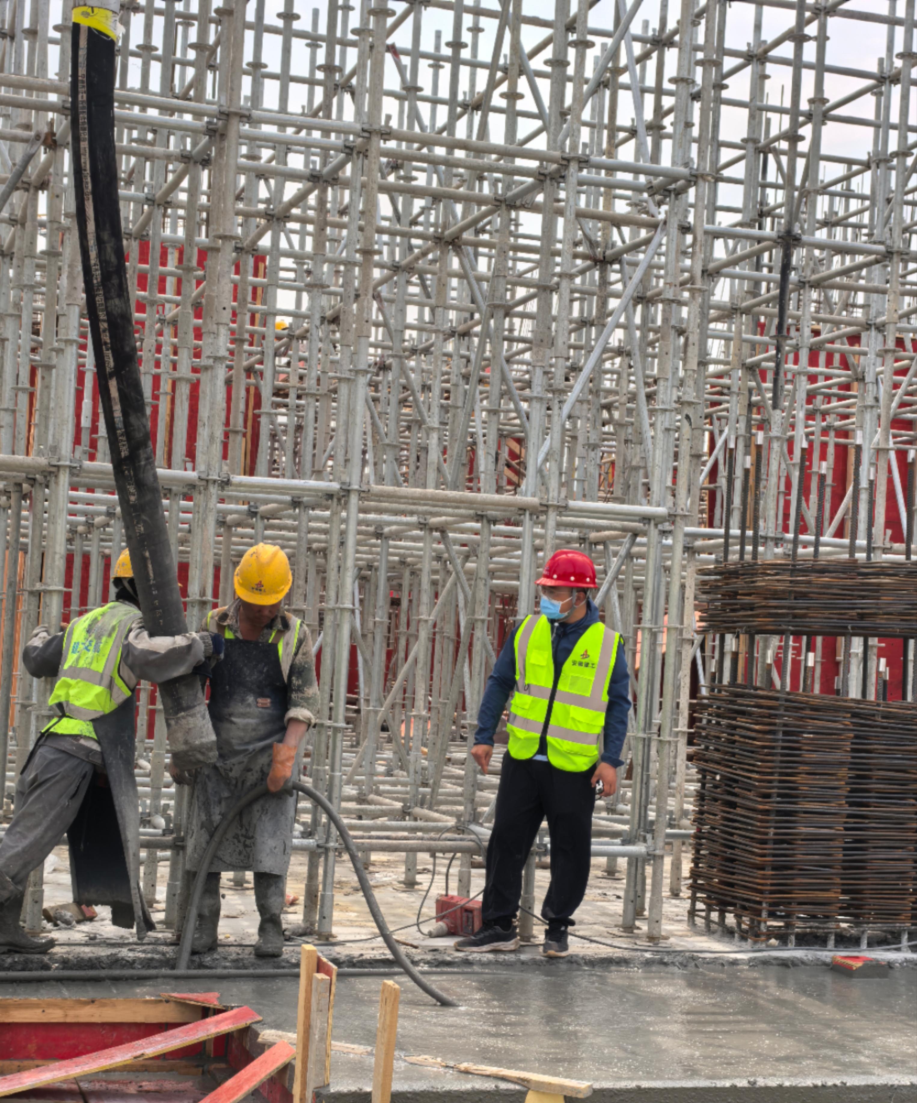 正值施工黃金期,阜陽智谷產業(yè)園(B)區(qū)項目施工現場如火如荼。項目工程管理部負責人宋朝望堅守一線,在混凝土澆筑作業(yè)面上,他忙碌的身影格外顯眼。宋朝望認真指揮現場工人規(guī)范操作,詳細記錄澆筑方量與時間,嚴格把控混凝土澆筑質量,在保障施工安全的同時,全力推進進度,確保項目按計劃有序推進。